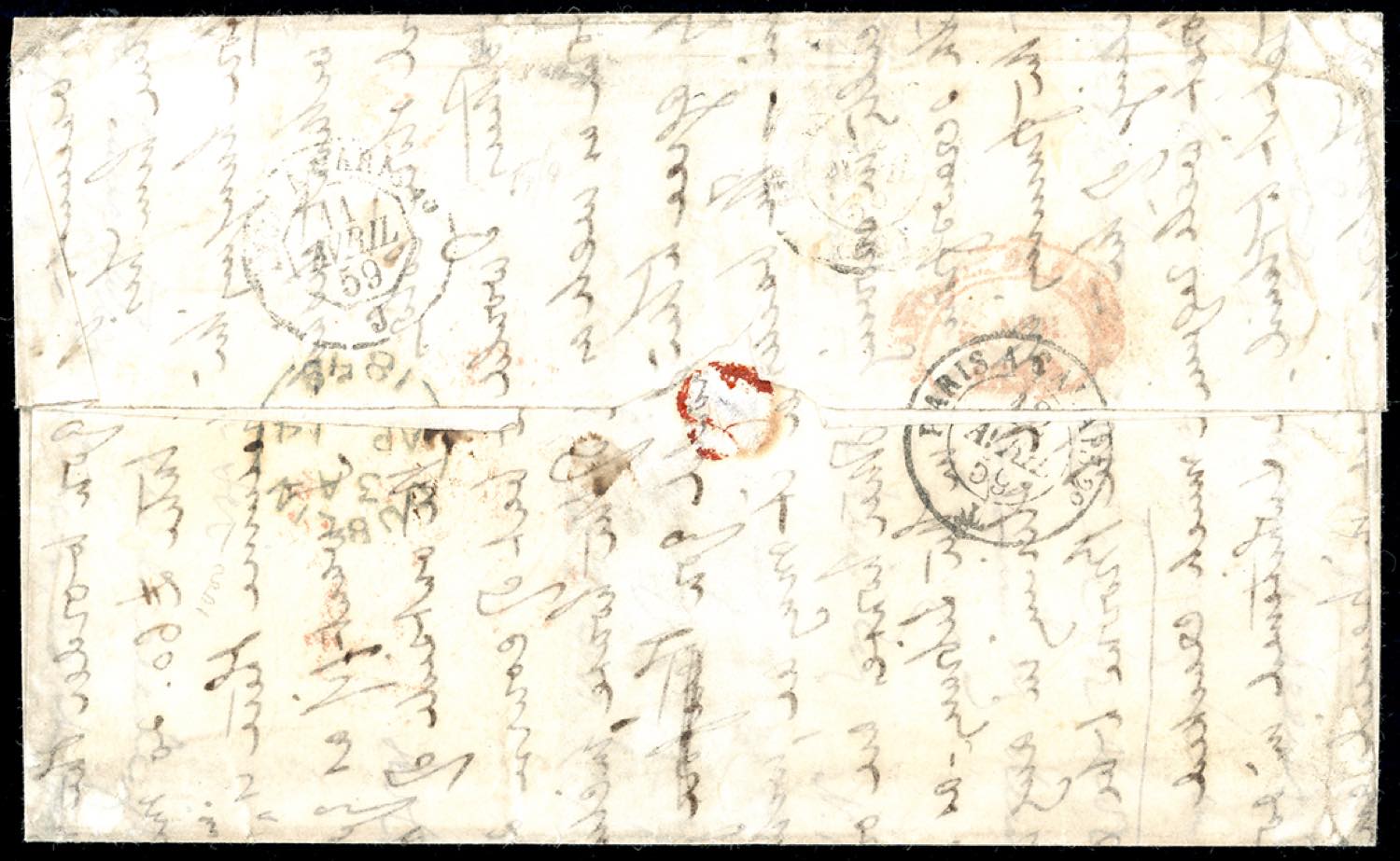 1859 - 50 grana rosa lillaceo, 2 grana rosa brunastro, III tavola (14a,7), perfetti e ben marginati, su lettera di doppio porto da Napoli ... Leggi tutto