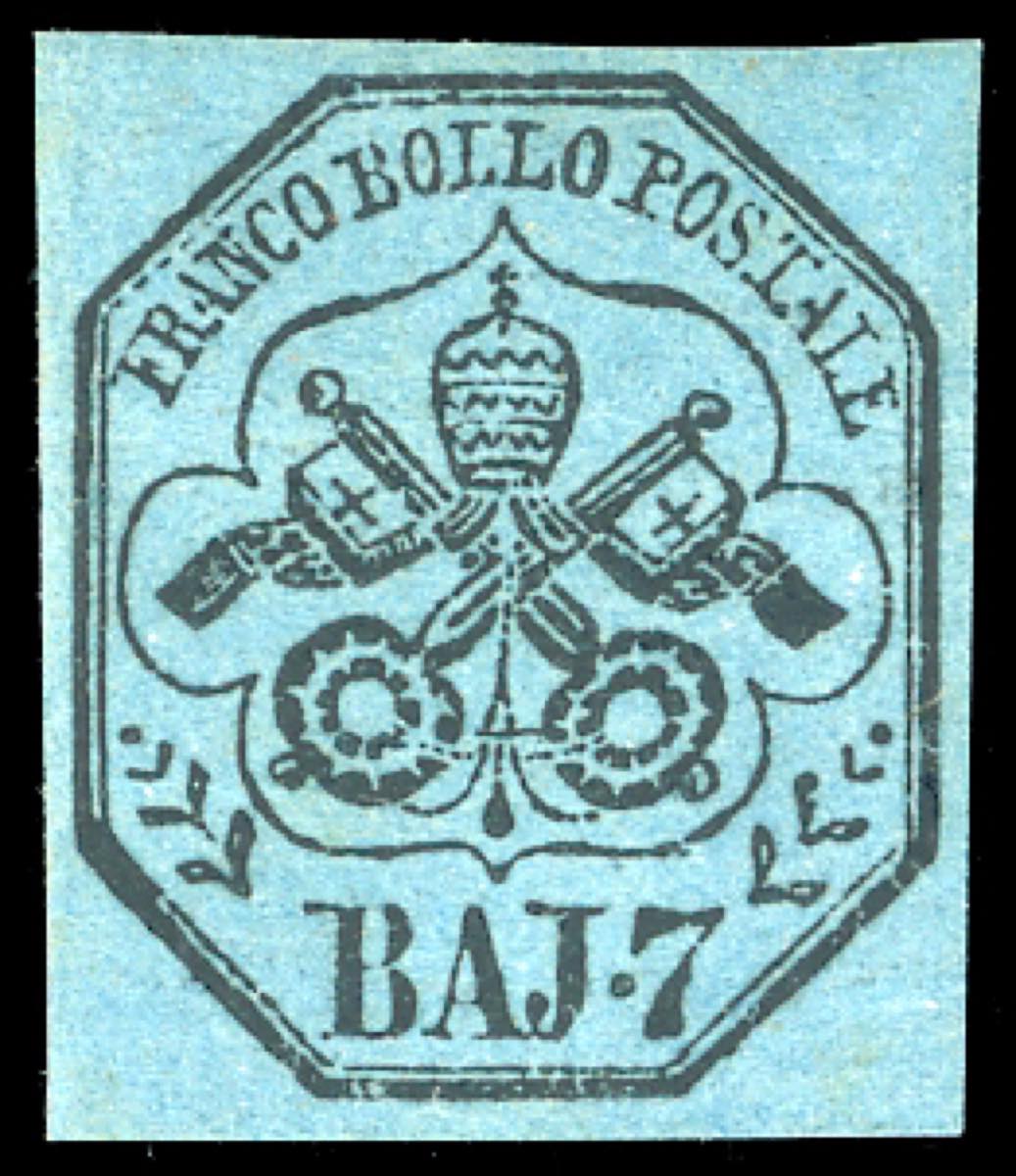 Lotto 261 - 1852 - 7 baj azzurro (8), gomma originale, perfetto. Molto ...
