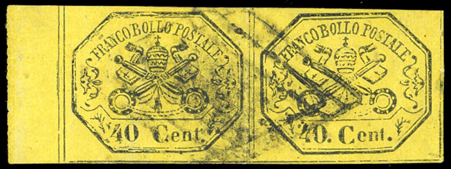 Lotto 300 - 1867 - 40 cent. giallo, coppia orizzontale, un esemplare ...