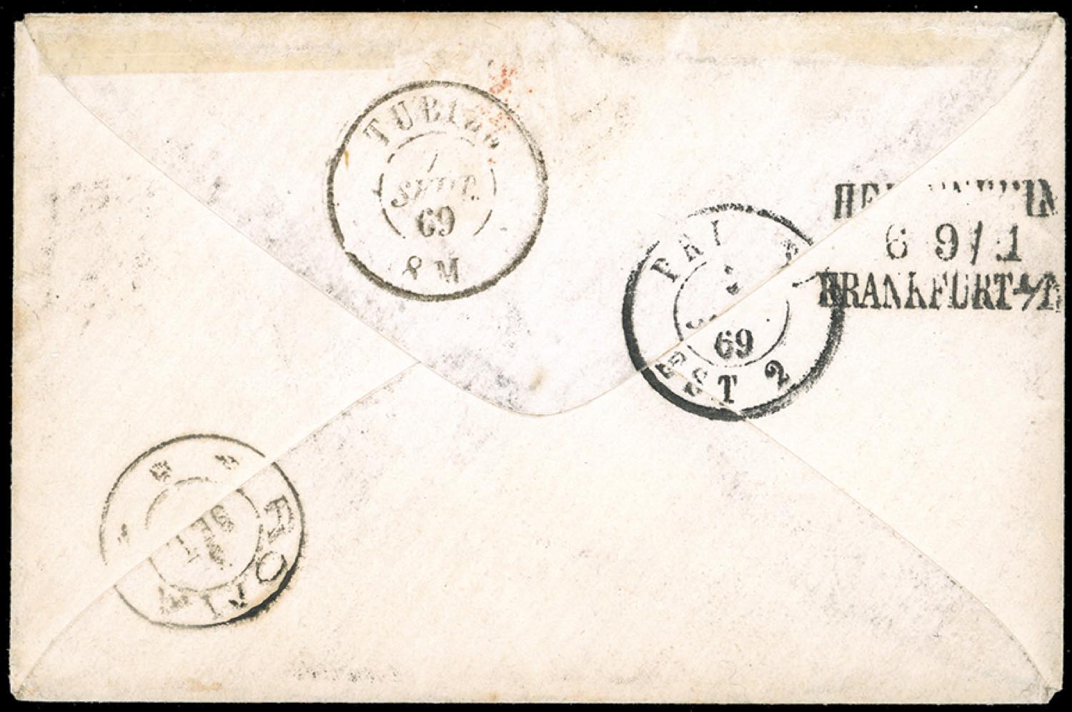 1859 - 40 cent. giallo (29b), su busta da Subiaco 2/09/1869 a Tubize in Germania, bollo corsivo "insufficiente" e numerosi segni di tassa. ... Leggi tutto