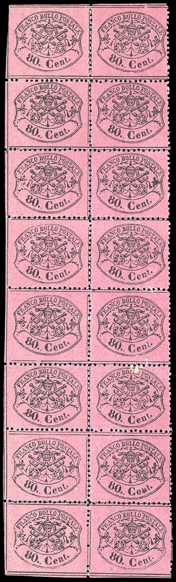1868 - 80 cent. lilla rosso, non emesso (31), perfetto ad eccezione di un esemplare leggermente difettoso, gomma originale integra. Ferrario.