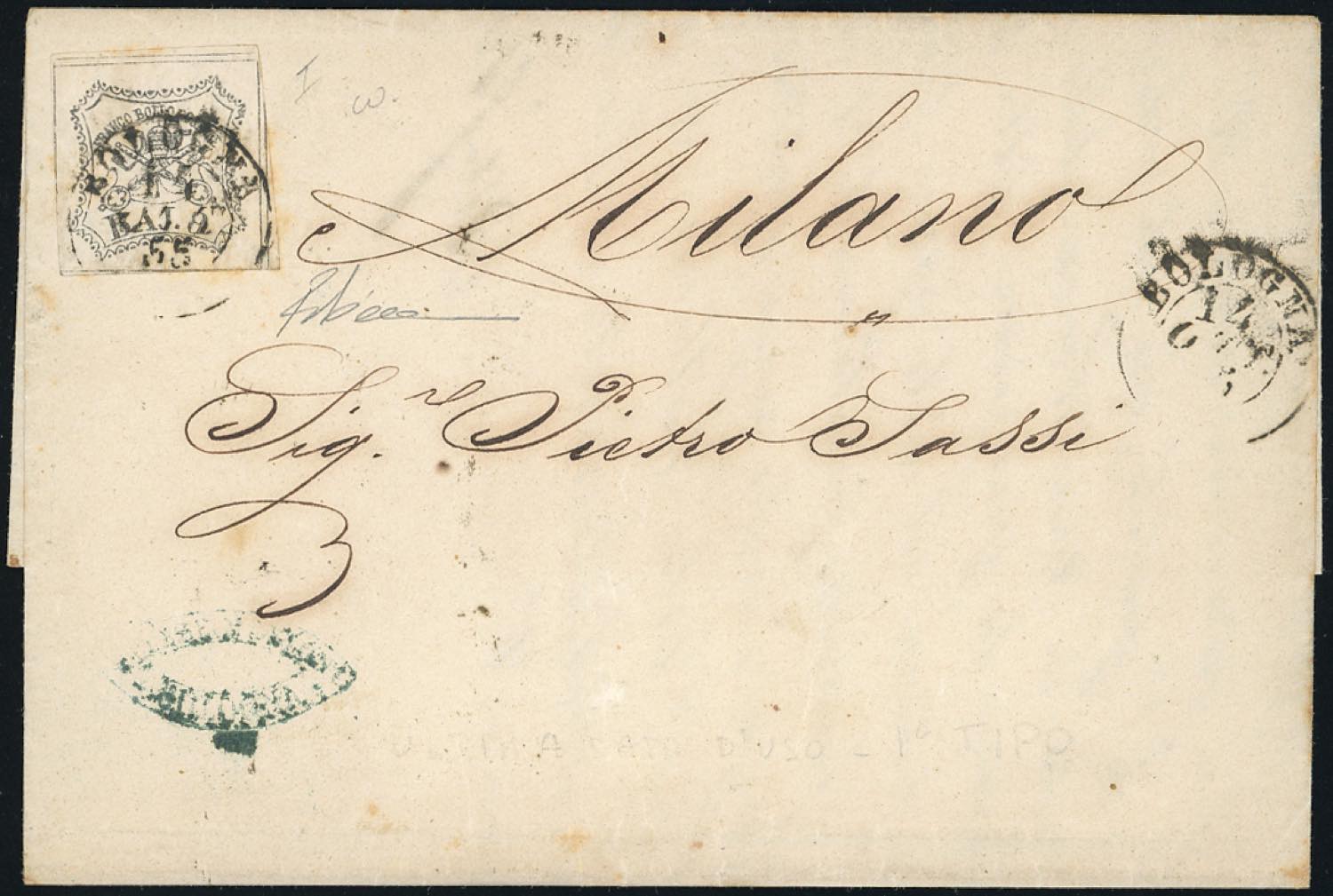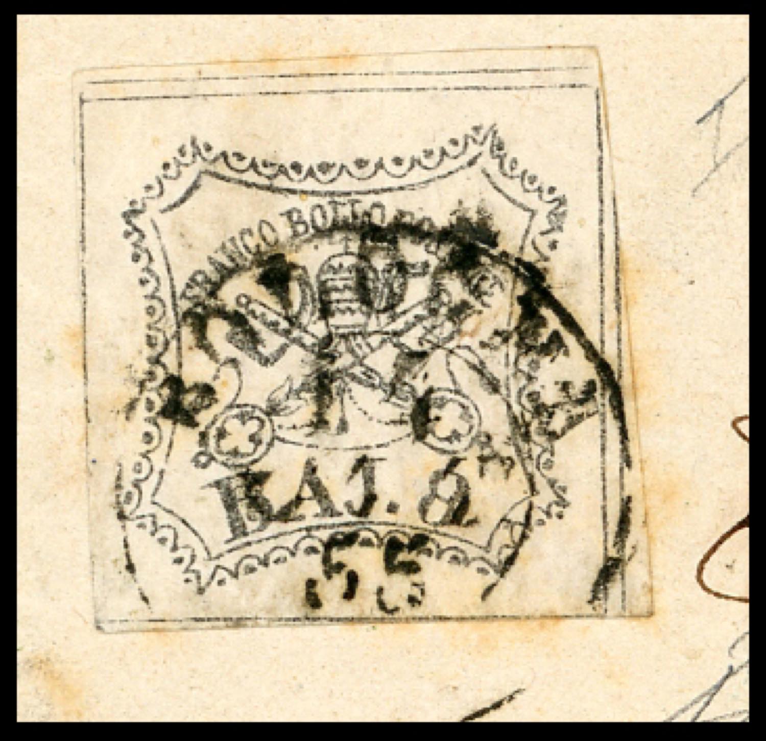 Lotto 334 - 1855 - 8 baj bianco, falso per posta di Bologna, I tipo ...