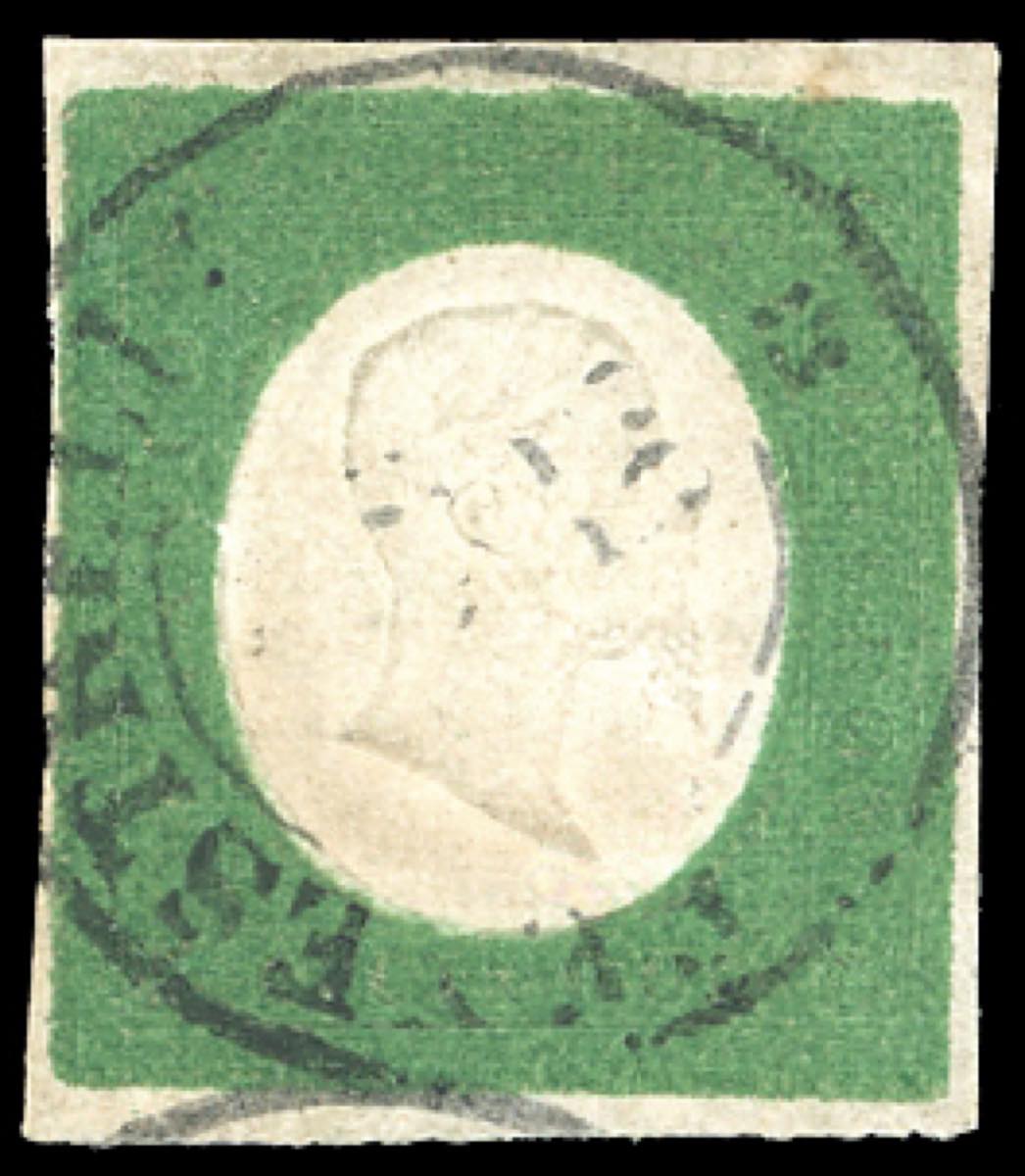 Lotto 399 - 1854 - 5 cent. verde giallo (7), usato con annullo ...