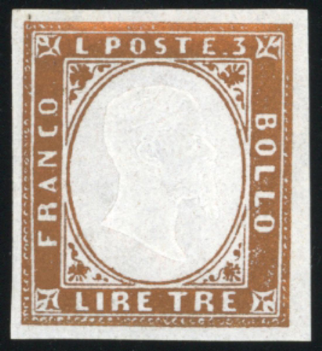 Lotto 485 - 1861 - 3 lire rame vivo (18A), gomma originale integra, ...