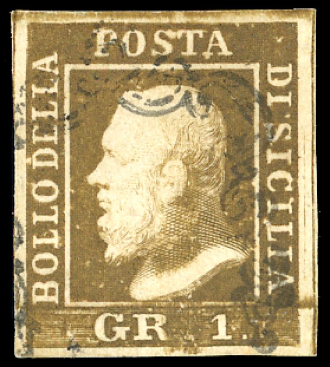 1859 - 1 grano bruno ruggine, I tavola, I stato (3), usato, perfetto. Bello. G.Oliva, A.Diena, Chiavarello, cert. Ferrario. Ex coll. Imperato.