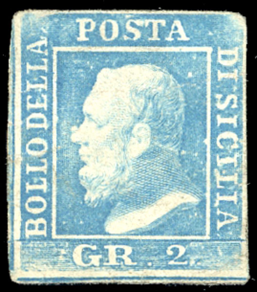 1859 - 2 grana azzurro, II tavola, carta di Napoli (7a), nuovo senza gomma, perfetto. Cert. Ferrario. Ex coll. Imperato.