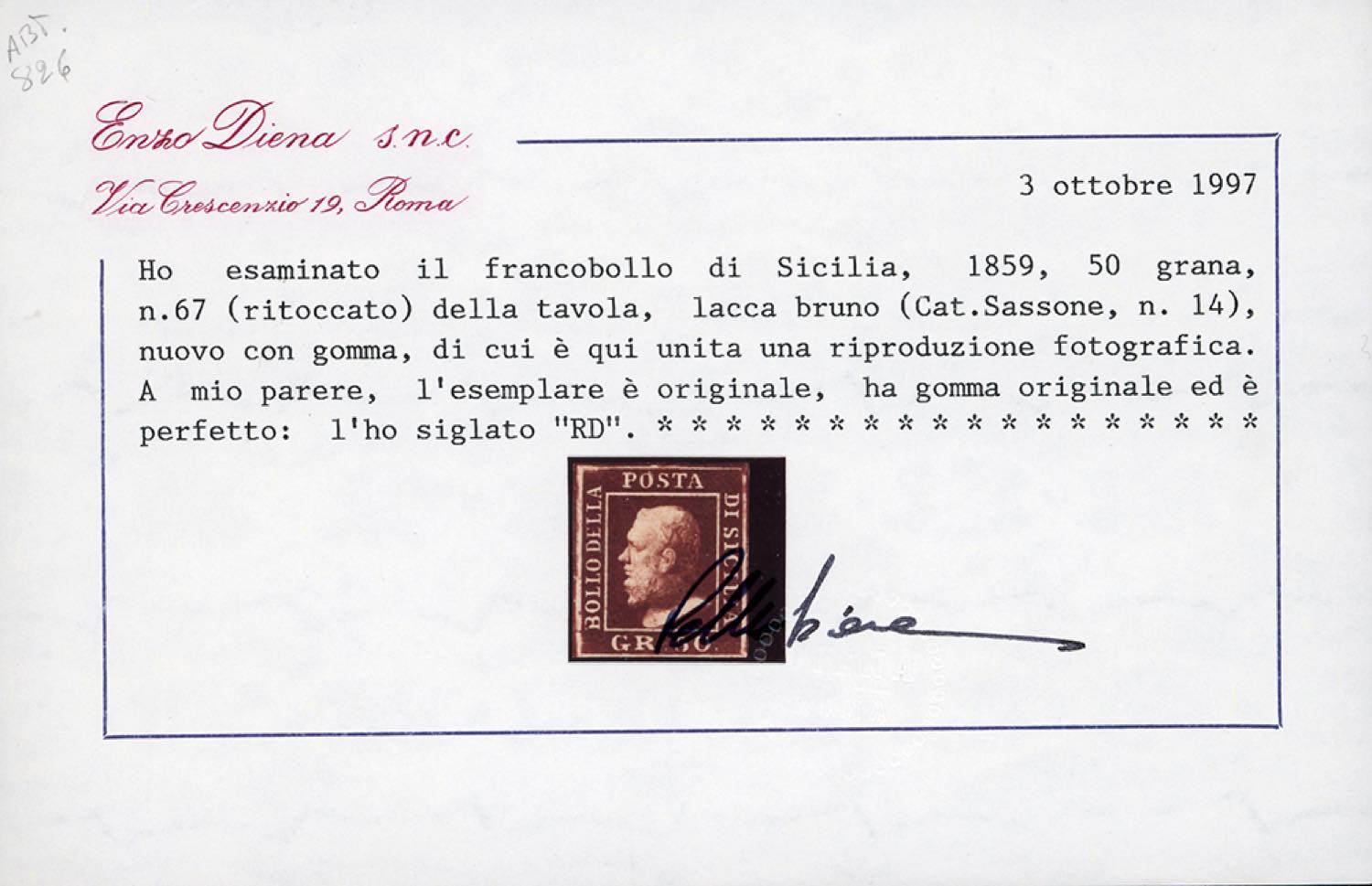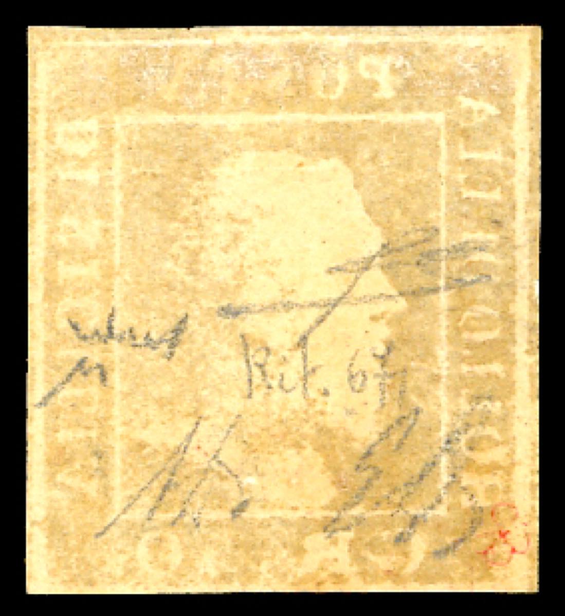 Lotto 612 - 1859 - 50 grana lacca bruno, ritocco posiz. 67, testa ...