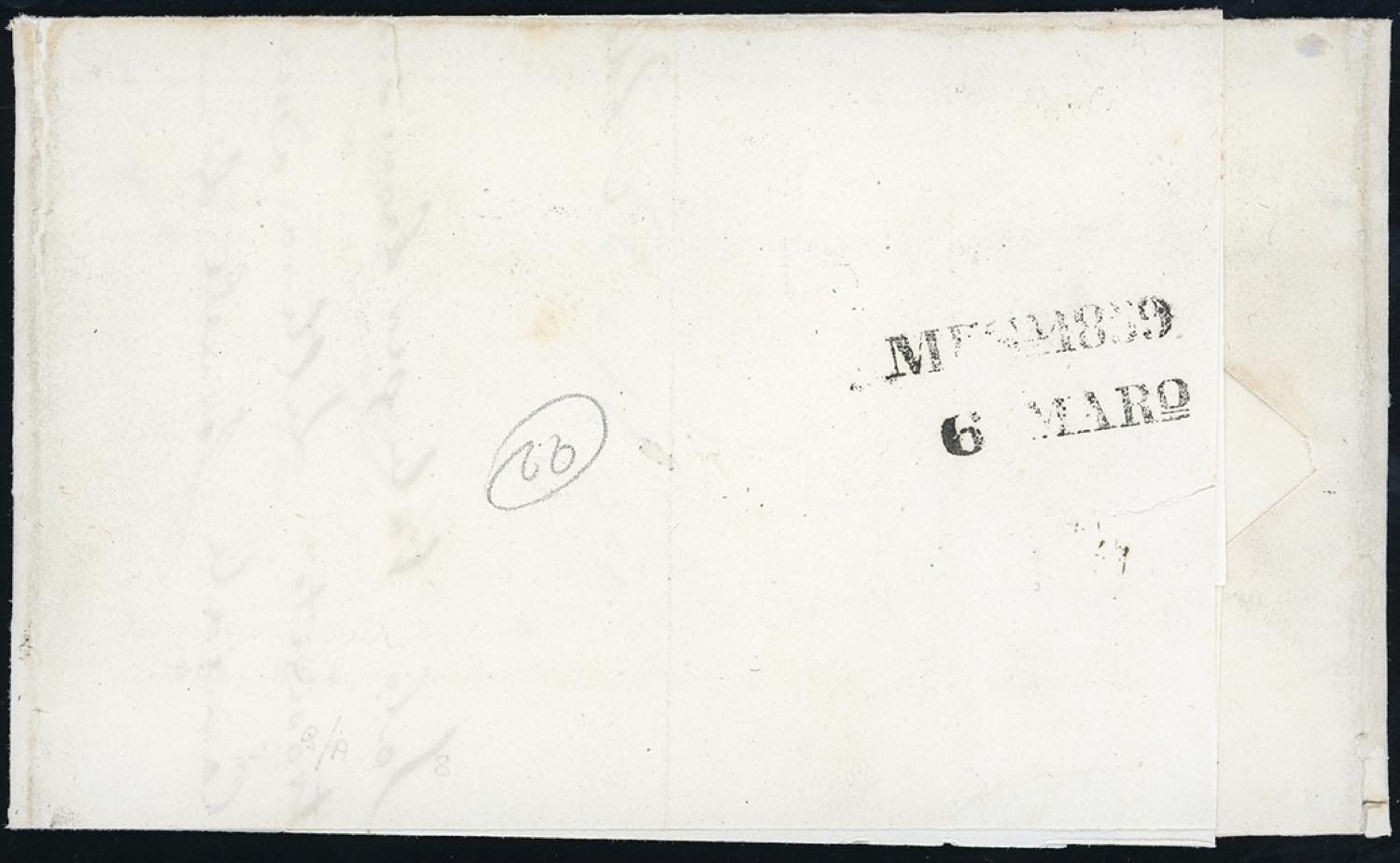 ADERNO', punti 12 - 2 grana, ritocco 71 (6), giusto in basso, su sovracoperta di lettera per Messina 6/3/1859. A. ed E.Diena.