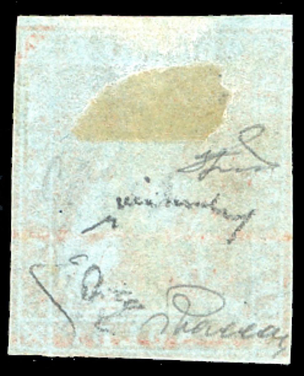 Lotto 641 - 1851 - 2 soldi scarlatto su carta azzurra (3), perfetto, ...
