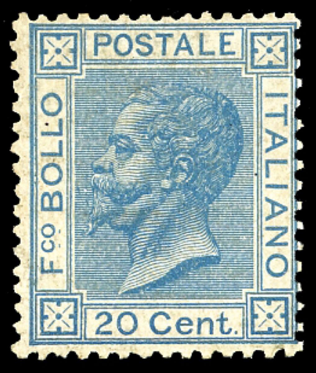 Lotto 770 - 1867 - 20 cent. azzurro, tiratura di Torino (T26), nuovo, ...