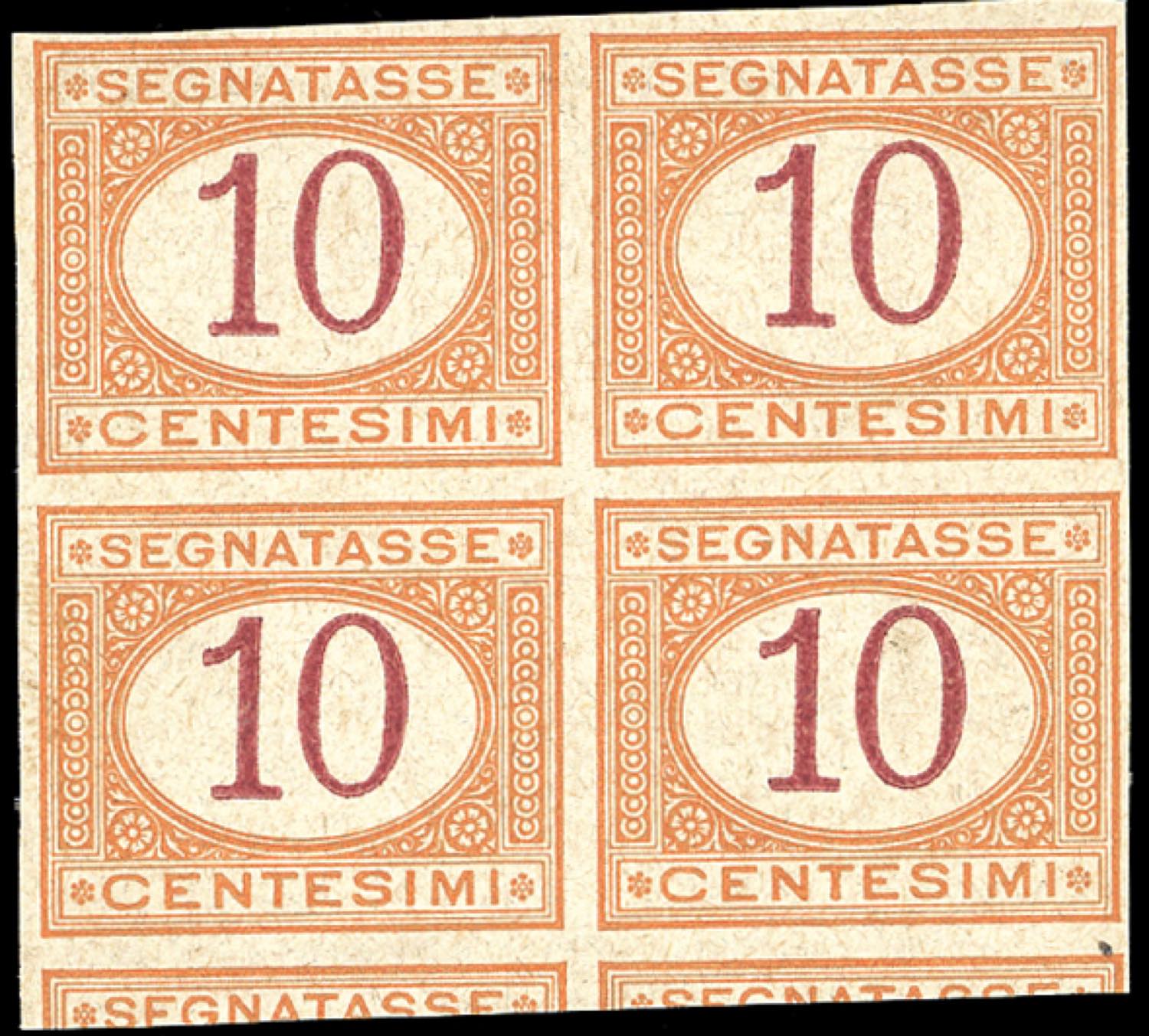 Lotto 1040 - 1870 - 10 cent. ocra e carminio (6), prova di macchina su ...