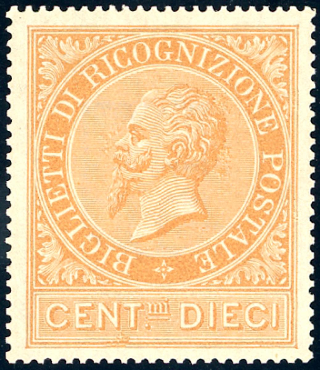 1874 - 10 cent. ocra arancio (1), ottima centratura, gomma originale integra, perfetto. Molto bello. Ferrario.