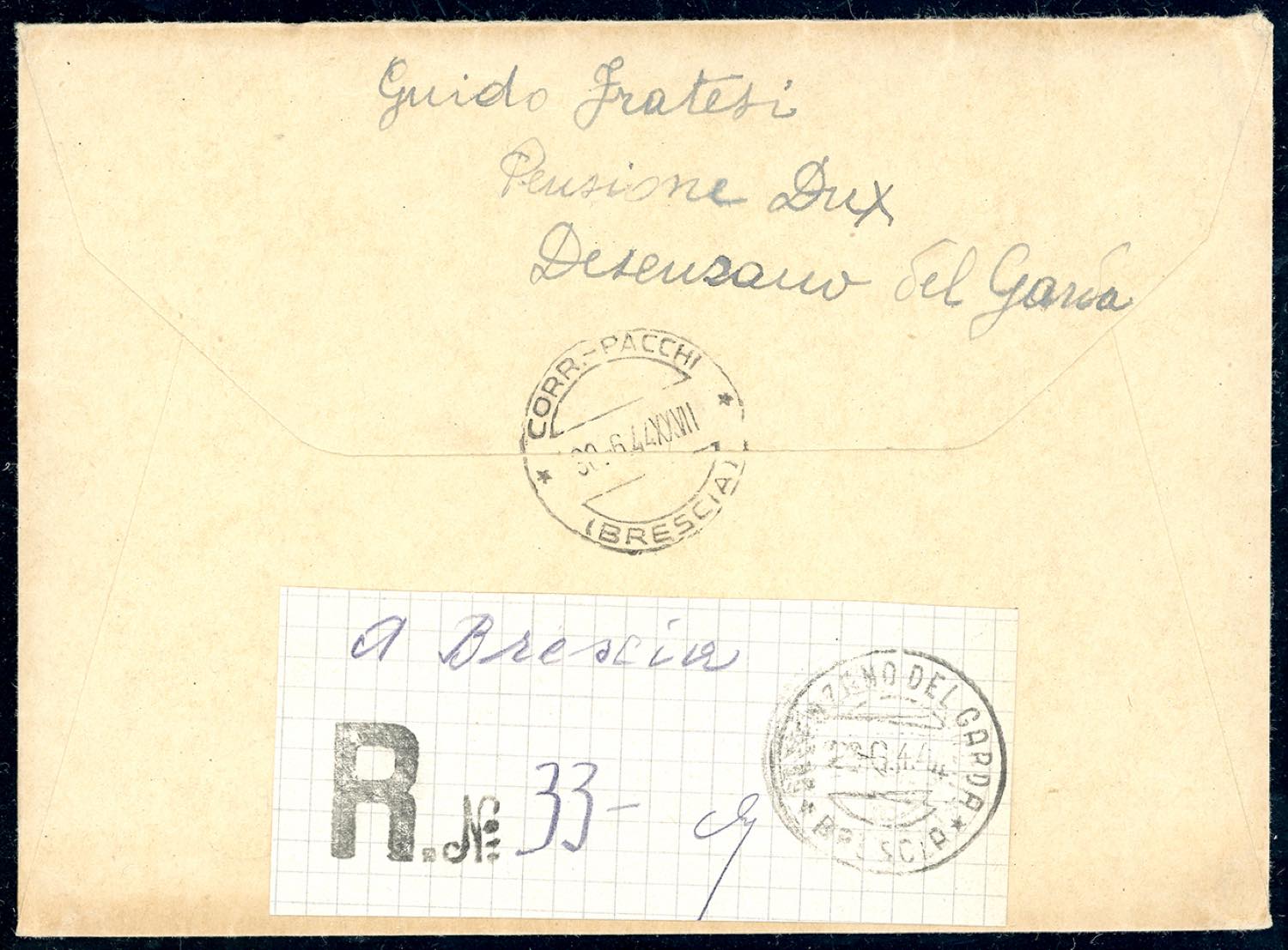 1944 - 50 lire soprastampato fascio in rosso, tiratura di Verona (501), perfetto, isolato su busta raccomandata da Desenzano del Garda ... Leggi tutto