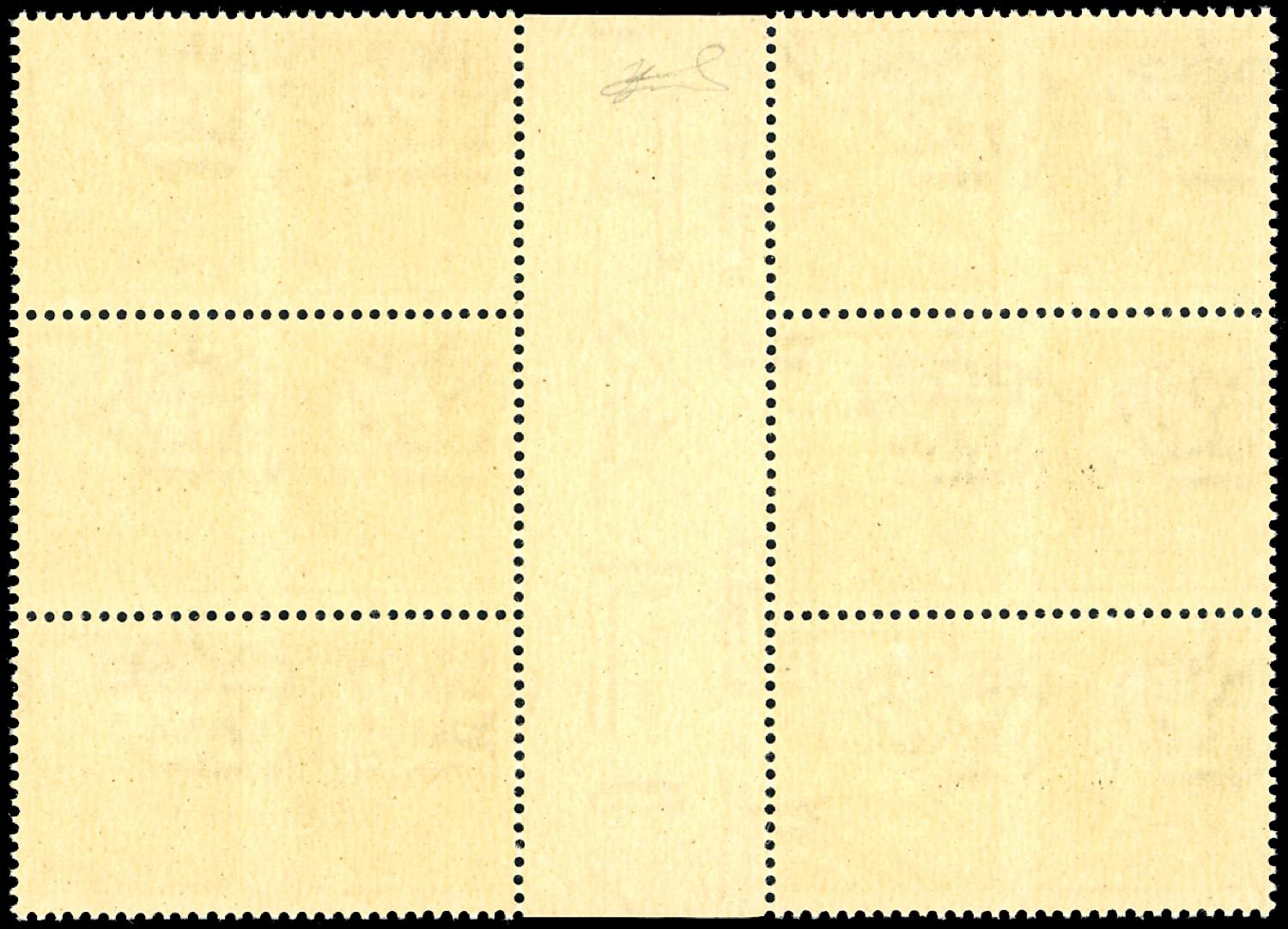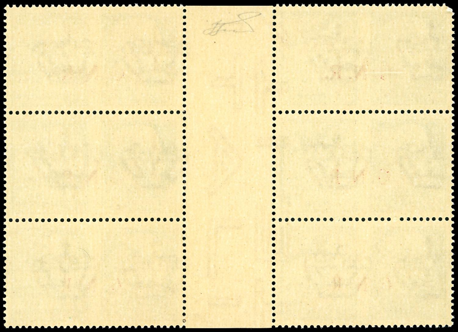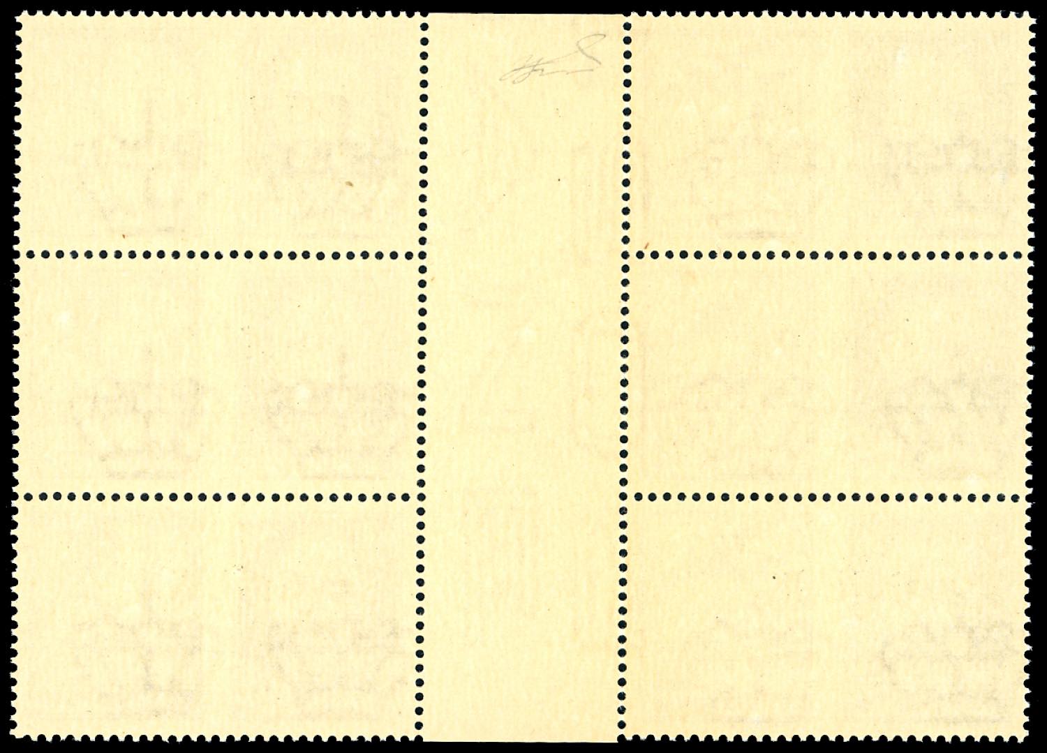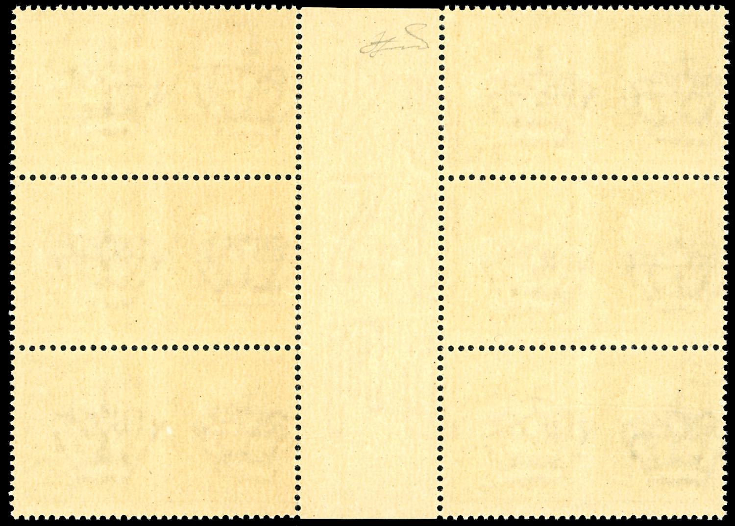 1943 - Eccezionale insieme di tutte le coppie orizzontali con interspazio di gruppo possibili della tiratura di Brescia con soprastampa G.N.R. Si tratta dei dodici valori soprastampati in blocchi di sei esemplari con interspazio di gruppo al centro. La prima coppia orizzontale ha soprastampa del II tipo, la seconda ha sul primo esemplare GN del II tipo e R del III tipo e sul secondo del II tipo, la terza coppia ha soprastampa del III tipo (13/II-24/III,13/III-24/III,13/Iia-24/II), nuovi, gomma originale integra, perfetti. Insieme splendido ed estremamente raro anche per la mancanza delle consuete pieghe verticali nell'interspazio. Ferrario, cert. Avi.