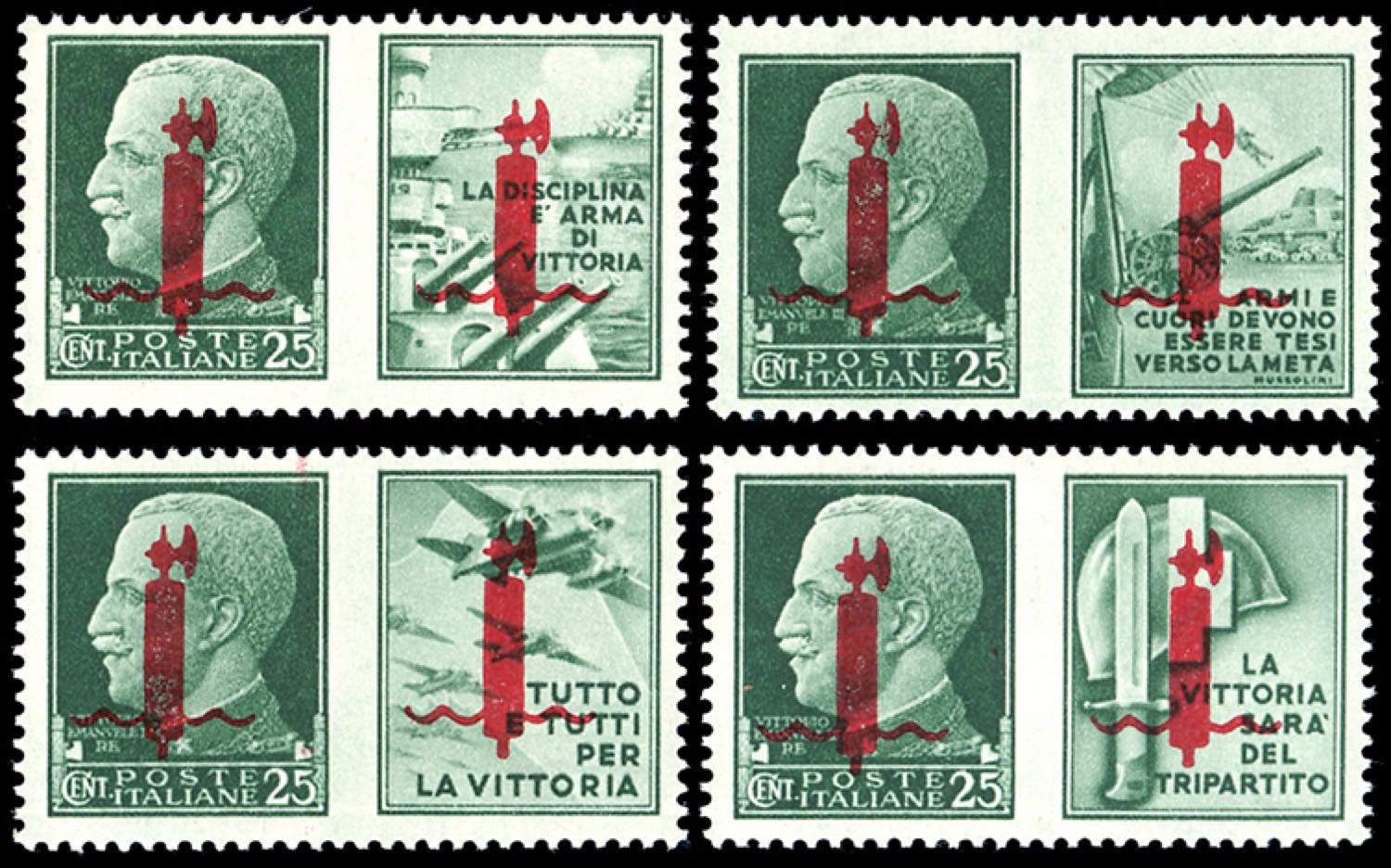 Lotto 1192 - 1944 - 25 cent. quattro valori scambio di soprastampa rossa ...