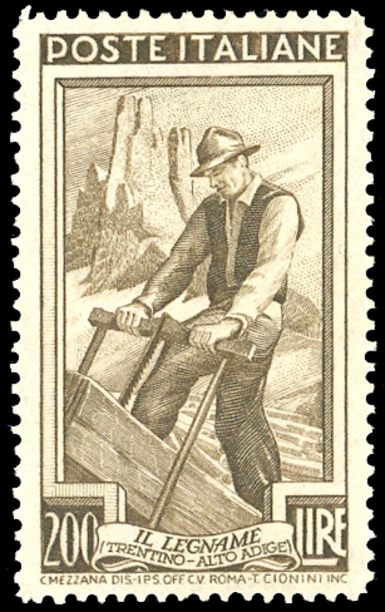 Lotto 1283 - 1950 - 200 lire Lavoro, dent. 14 1/4 x 14 1/4, filigrana ...