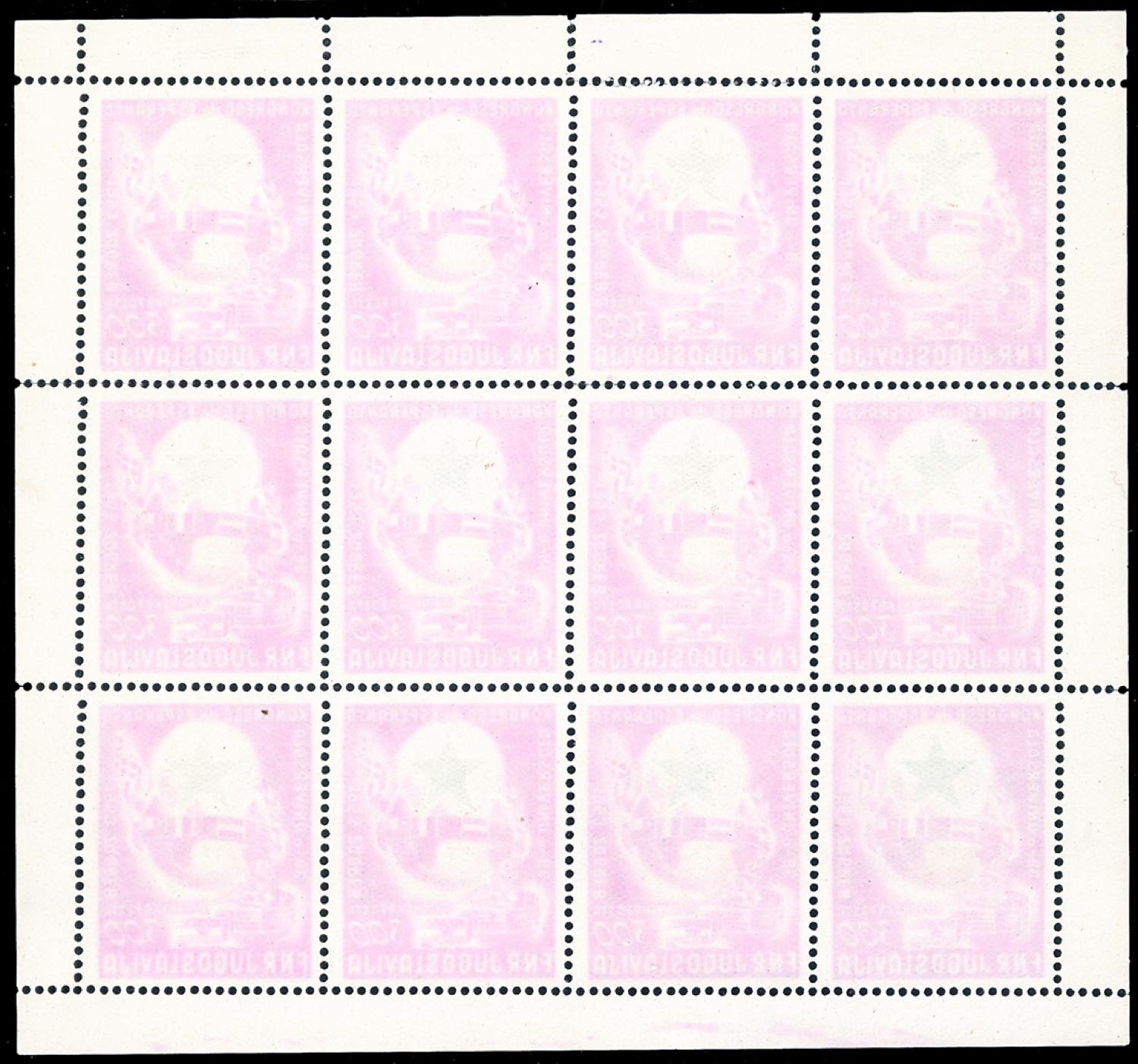 MINIFOGLI 1953 - 300 d. Esperanto, minifoglio di 12 esemplari (4), nuovo, decalco della stampa al verso, gomma originale integra, perfetto. Raro.