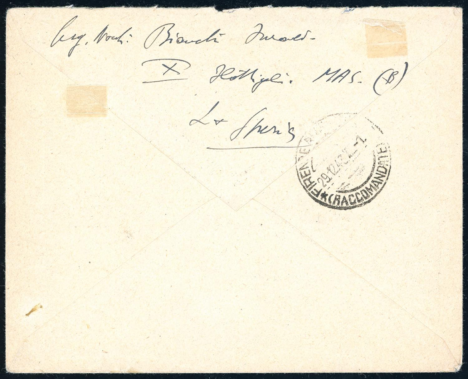 BASE ATLANTICA 1943 - 20 cent., 25 cent., 30 cent., 50 cent. soprastampati in carattere bastoncino, 30 cent. e 30 cent. Marina soprastampa di tipo diverso, 10 cent. e 20 cent. soprastampa capovolta (2/5,10,16,6a,8a), perfetti, su busta raccomandata da Bologna 27/12/1943 a Firenze, bollo d'arrivo. Affrancatura estremamente rara e di ottima qualità. Cert. A.Diena.