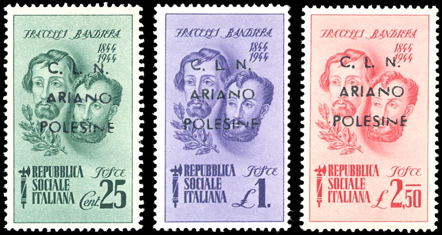 ARIANO POLESINE 1945 - Fratelli Bandiera, serie completa, soprastampa del II tipo (Errani Raybaudi 44/46), nuovi, gomma orginale integra, ... Leggi tutto