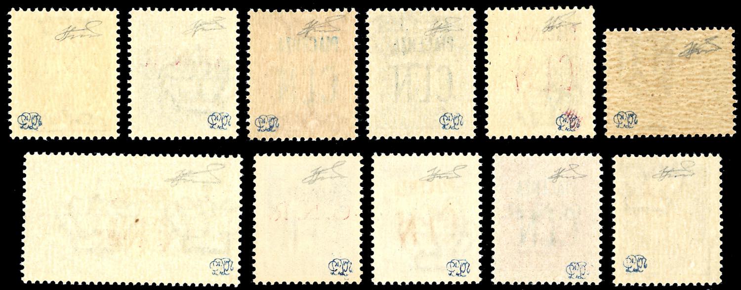 PIACENZA 1945 - Soprastampati G.N.R., serie completa con nuova soprastampa "Piacenza C.L.N." in caratteri stretti (Errani Raybaudi 58/68), nuovi, gomma originale integra, perfetti. Molto belli. Tiratura 25 esemplari ciascuno, ad eccezione dei n. 62,64 e 67 che ebbero una tiratura di 125. Insieme di difficile reperibilità. Una delle serie di rari di tutti i C.L.N. Cert. Ferrario.