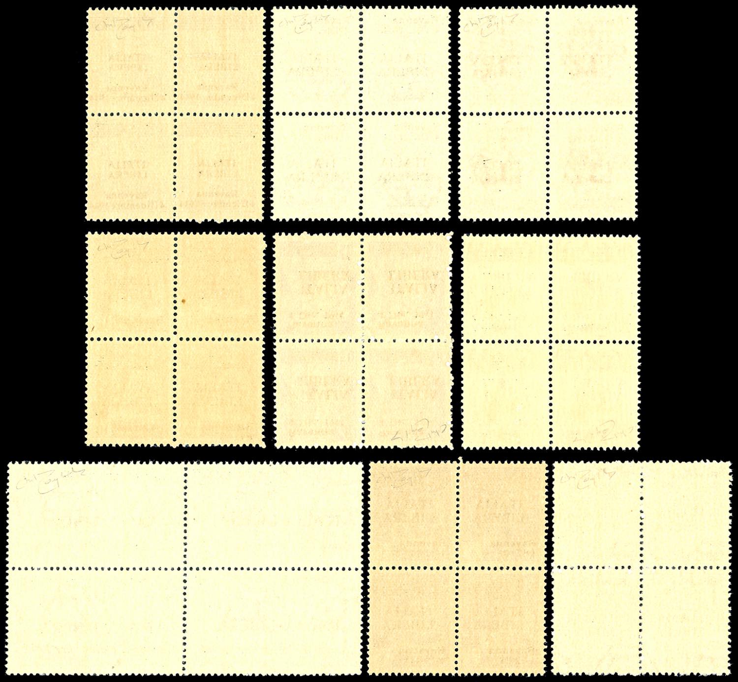 RAVENNA 1945 - Serie completa di 9 valori soprastampati (CEI n.1/9 € 24.000 a serie, Orlandini n. 1/9 pag.60 € 4.500 a serie), blocchi ... Leggi tutto