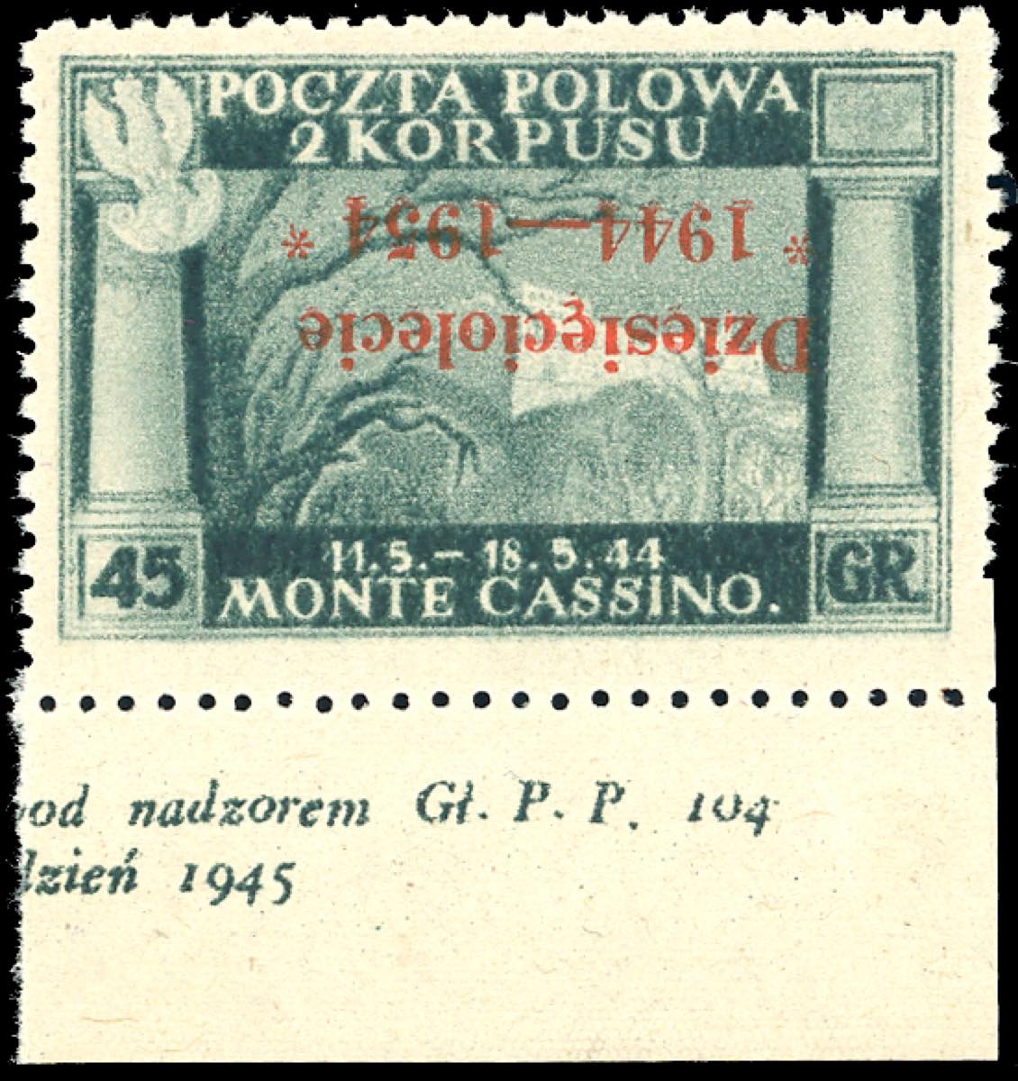 GOVERNO DI LONDRA 1954 - 45 g. soprastampa vermiglio capovolta (7a), bordo di foglio, nuovo, gomma originale integra, perfetto. Bello e raro. Cert. Ferrario.