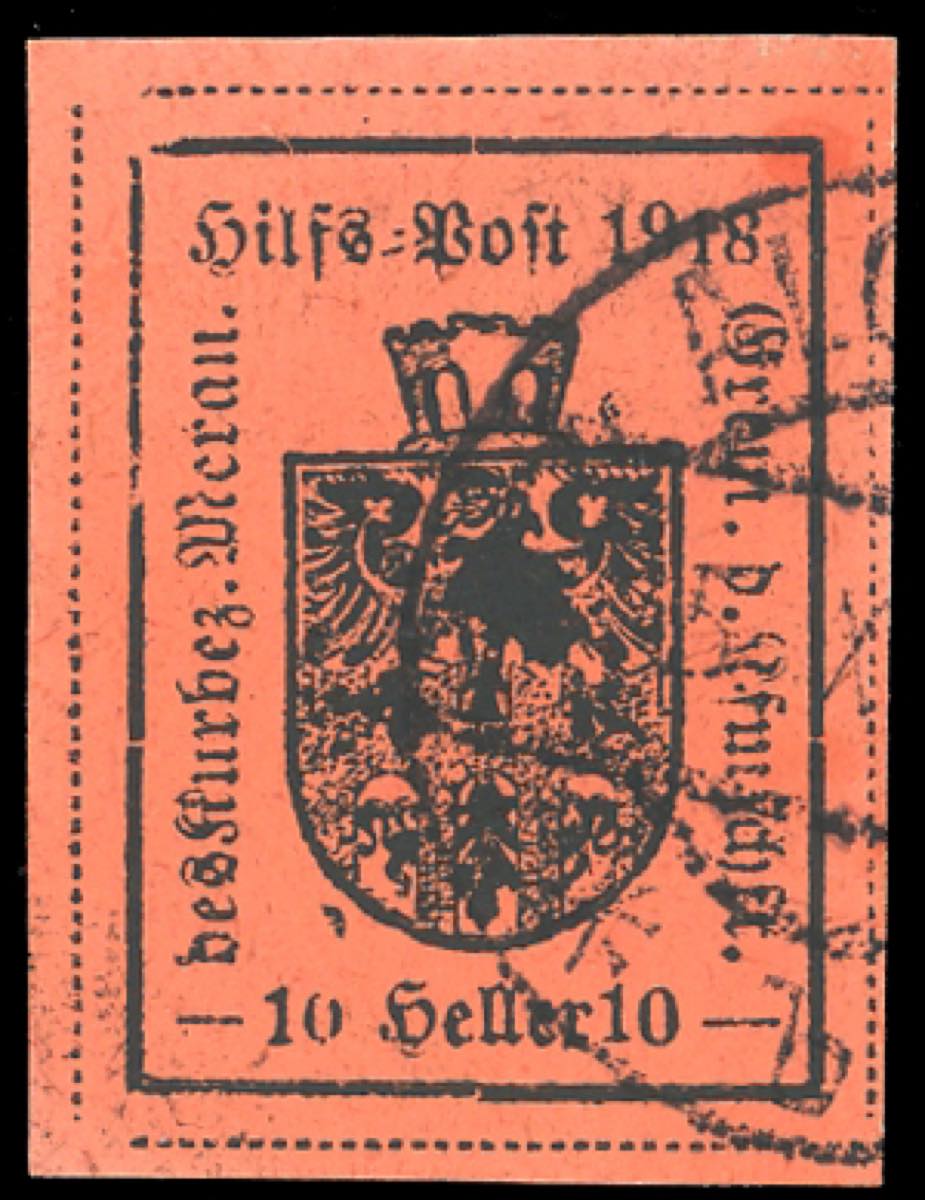 Lotto 1680 - MERANO 1918 - 10 h. rosso mattone, III tipo (9), usato, ...