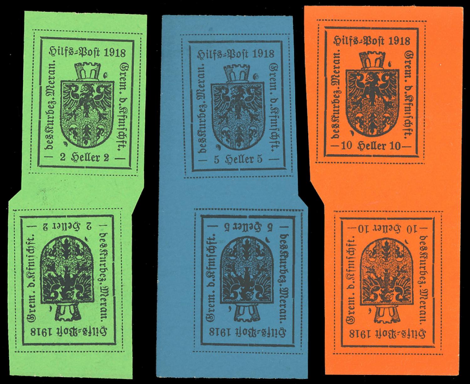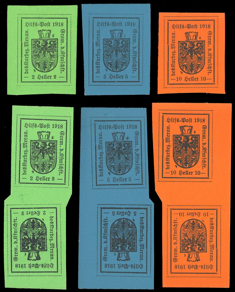 MERANO 1918 - La serie di tre valori del IV tipo, ripetuta anche in coppie verticali tète-bèche (10/12,10d/12d), nuovi, senza gomma come ... Leggi tutto