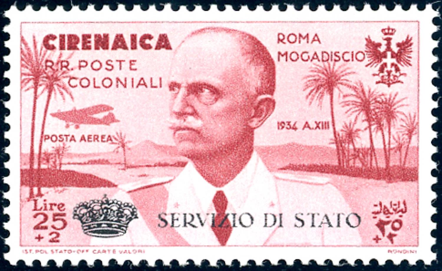 Lotto 1816 - SERVIZIO AEREO 1934 - 25 + 2 lire Coroncina (1), perfetto, ...
