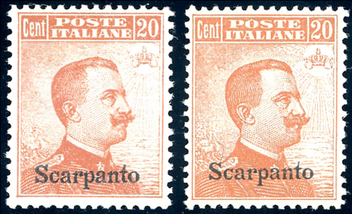 SCARPANTO 1917/22 - 20 cent. Michetti, con e senza filigrana (9,11), nuovi, gomma originale integra, perfetti e molto ben centrati. ... Leggi tutto