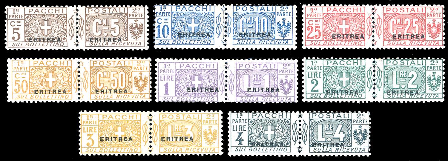 Lotto 1889 - PACCHI POSTALI 1916 - Soprastampati, serie completa (1/8), ...