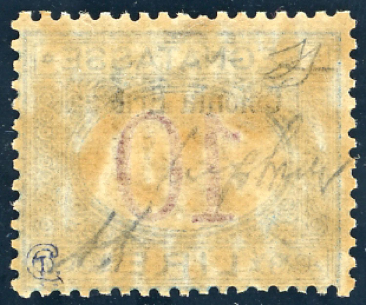 SEGNATASSE 1903 - 10 lire, soprastampato in alto (11), gomma originale integra, perfetto e molto fresco. Raro. A.Diena, Sirotti, cert. Ferrario.