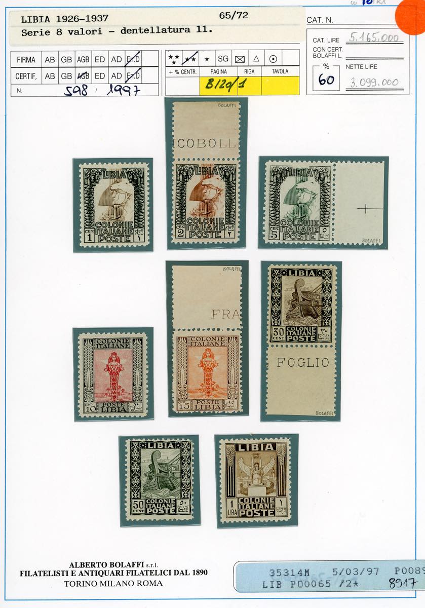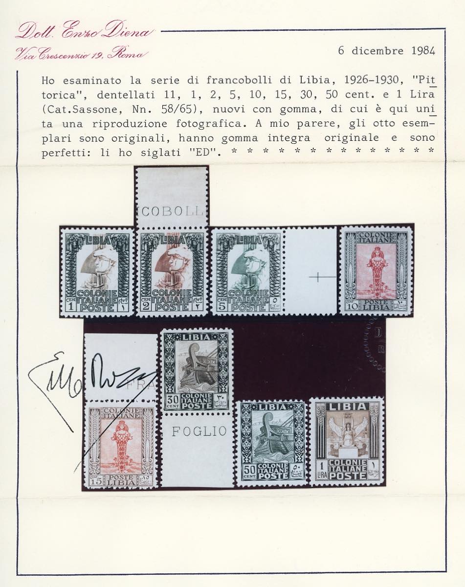 1926/30 - Pittorica, dent. 11, serie completa (58/65), gomma originale integra, perfetti. Molto freschi. Cert. Finanziario Bolaffi ed E.Diena.