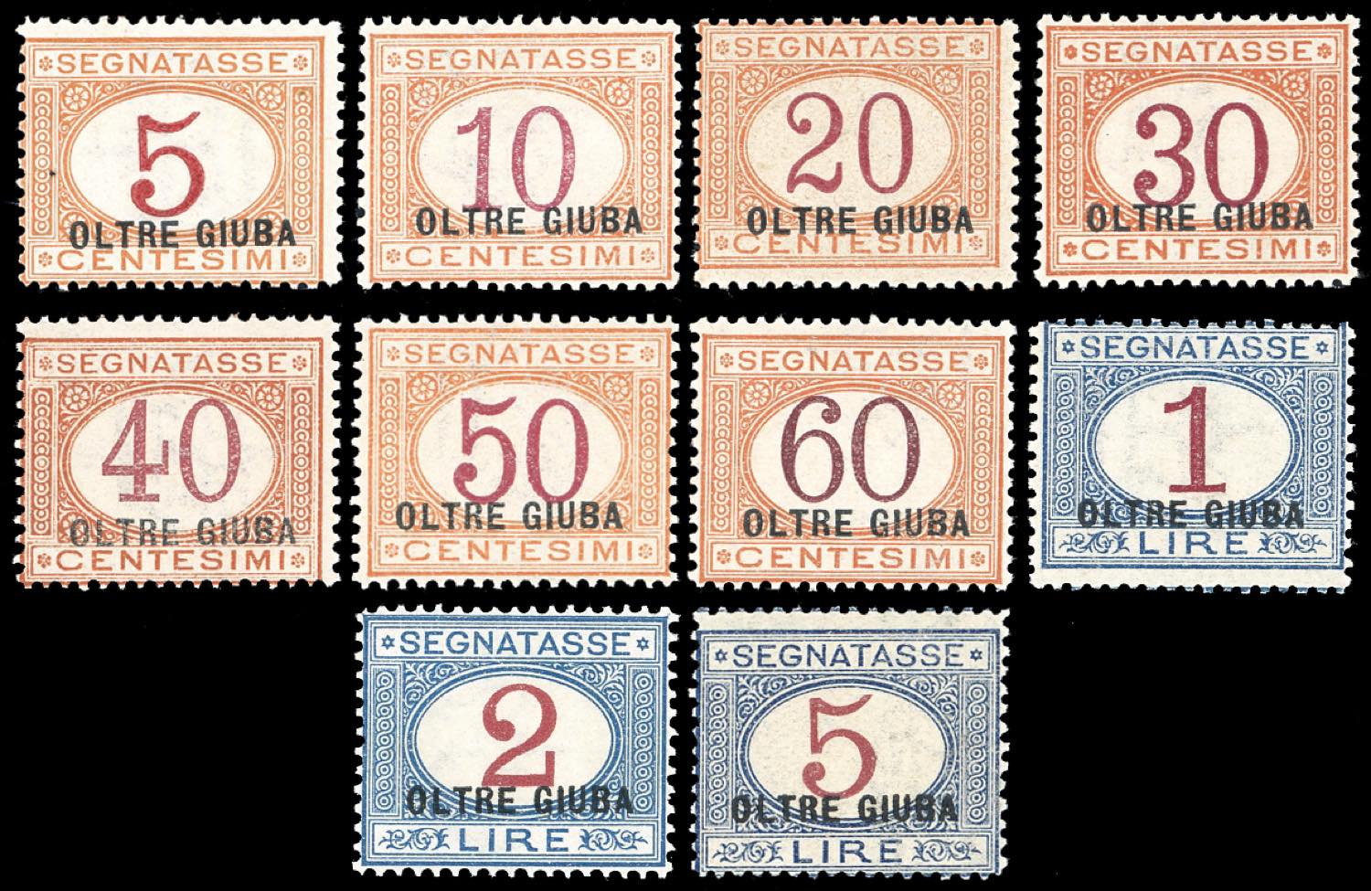SEGNATASSE 1925 - Serie completa (1/10), nuovi, gomma originale integra, perfetti. Molto freschi. Alti valori cert. Ferrario.