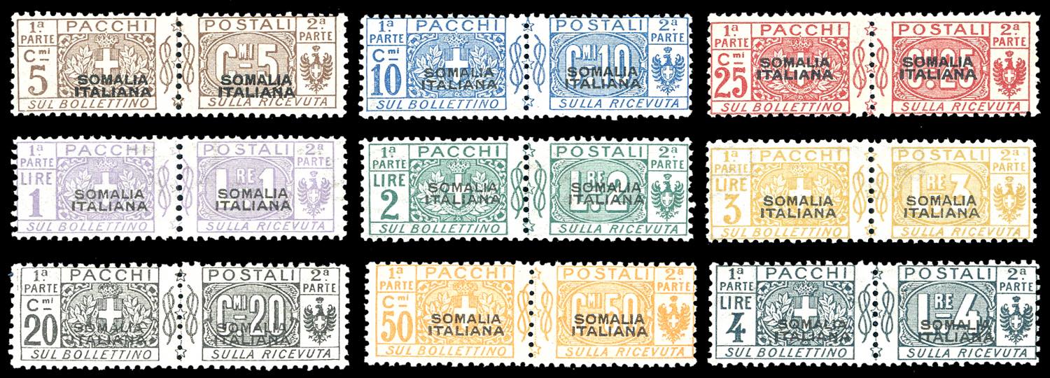PACCHI POSTALI 1917/19 - Soprastampati, serie completa (1/9), gomma originale integra, perfetti. Cert. Diena.
