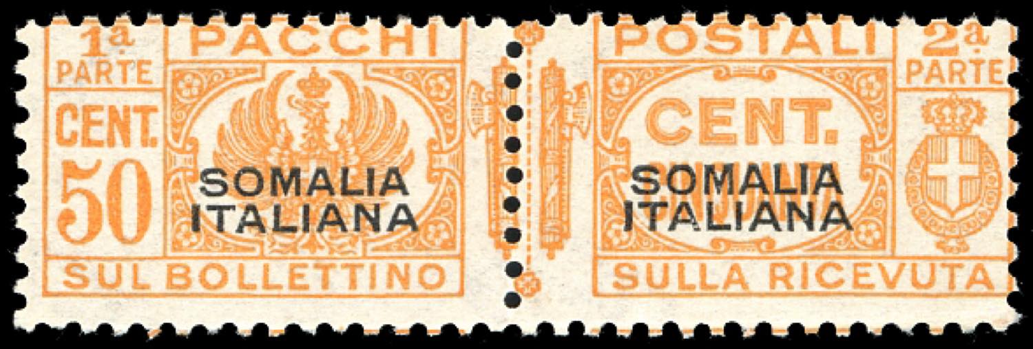 PACCHI POSTALI 1940 - 5 cent. arancio, fasci al centro, soprastampa del I tipo (58), gomma originale integra, perfetto e molto fresco. ... Leggi tutto