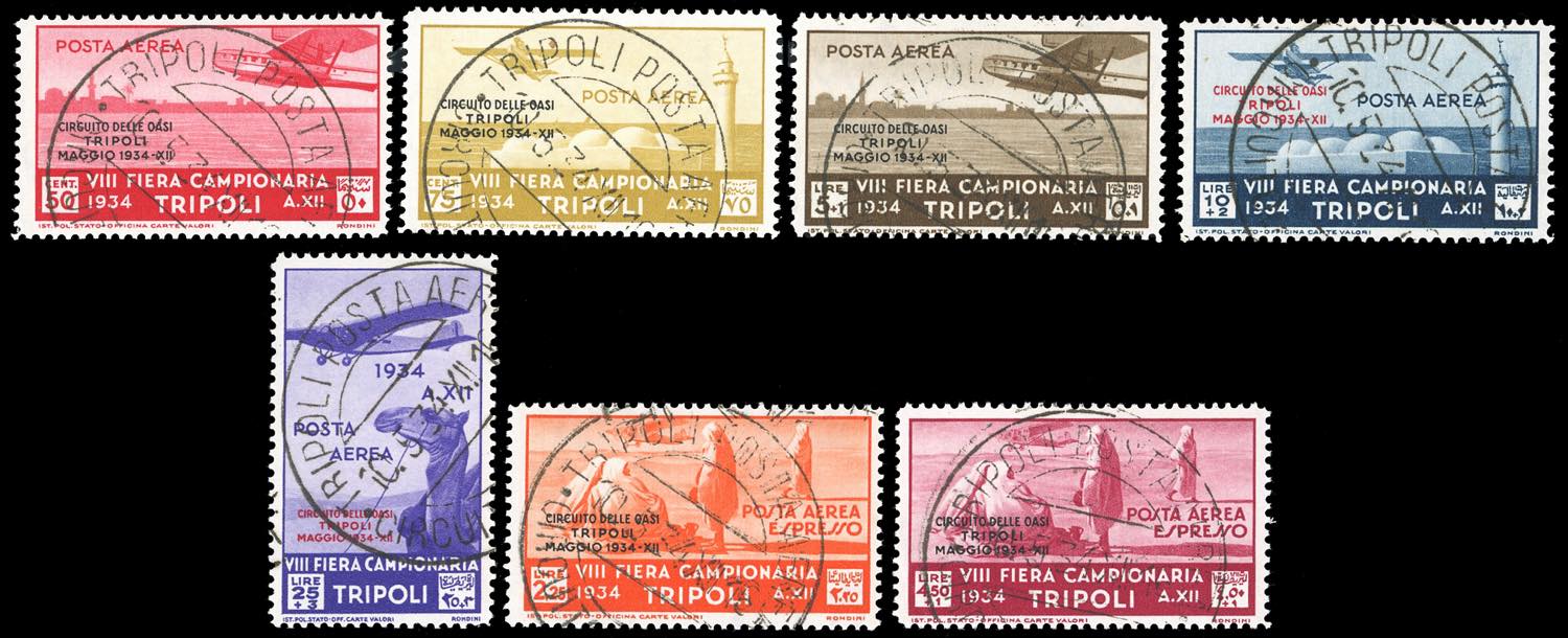 POSTA AEREA 1934 - Circuito delle Oasi, serie completa (34/40), usati, perfetti, molto belli e rari. Cert. Ferrario.