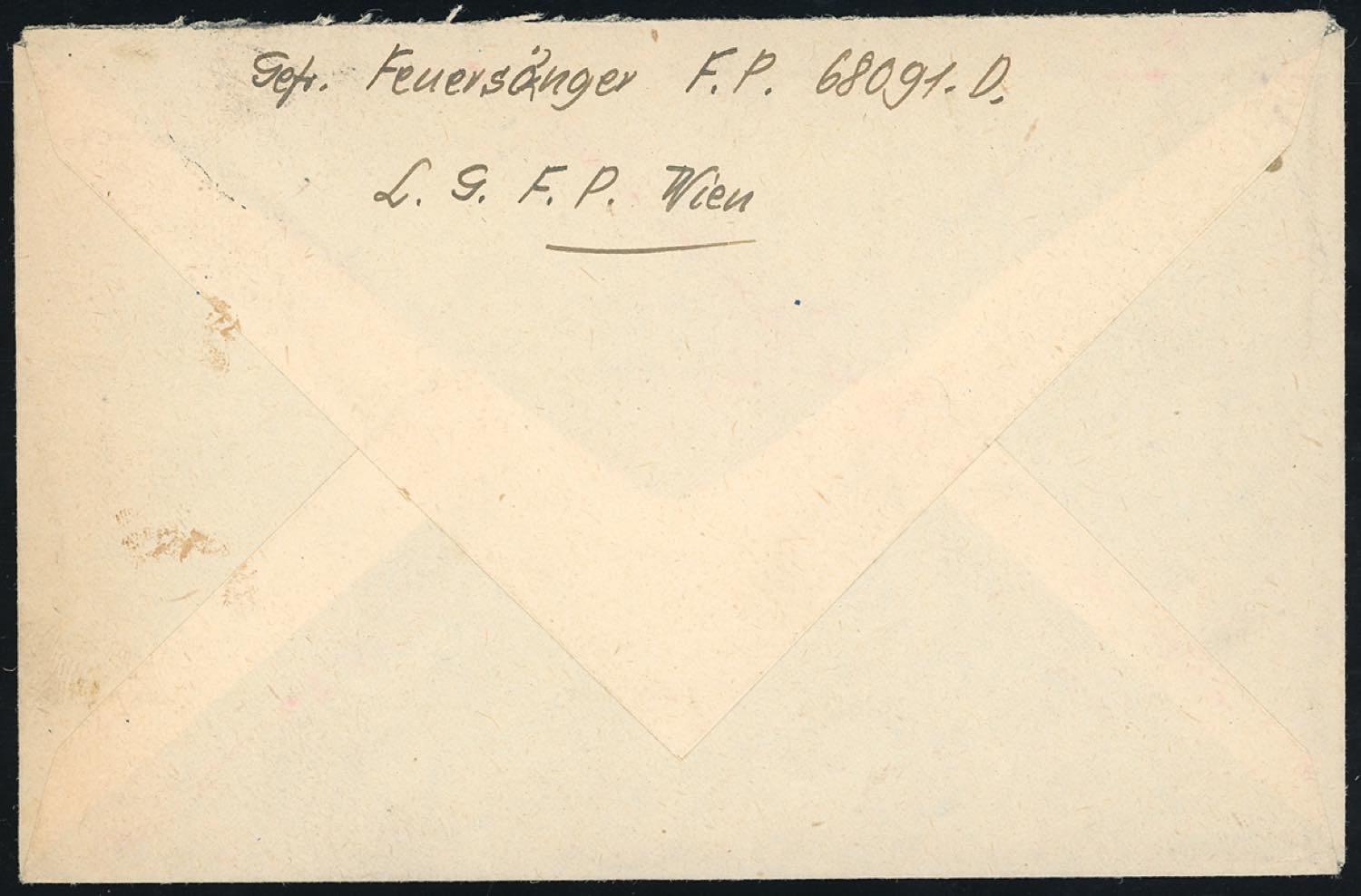 OCCUPAZIONE TEDESCA EGEO 1945 - Inselpost, soprastampa di Agram (5), soprastampa fortemente spostata, "a cavallo", e tratto tipografico dopo la "T", su busta dalla Feldpost "h", marzo 1945 per la Germania. Combinazione di varietà non catalogata dal Sassone. Molto rara. Ferrario.