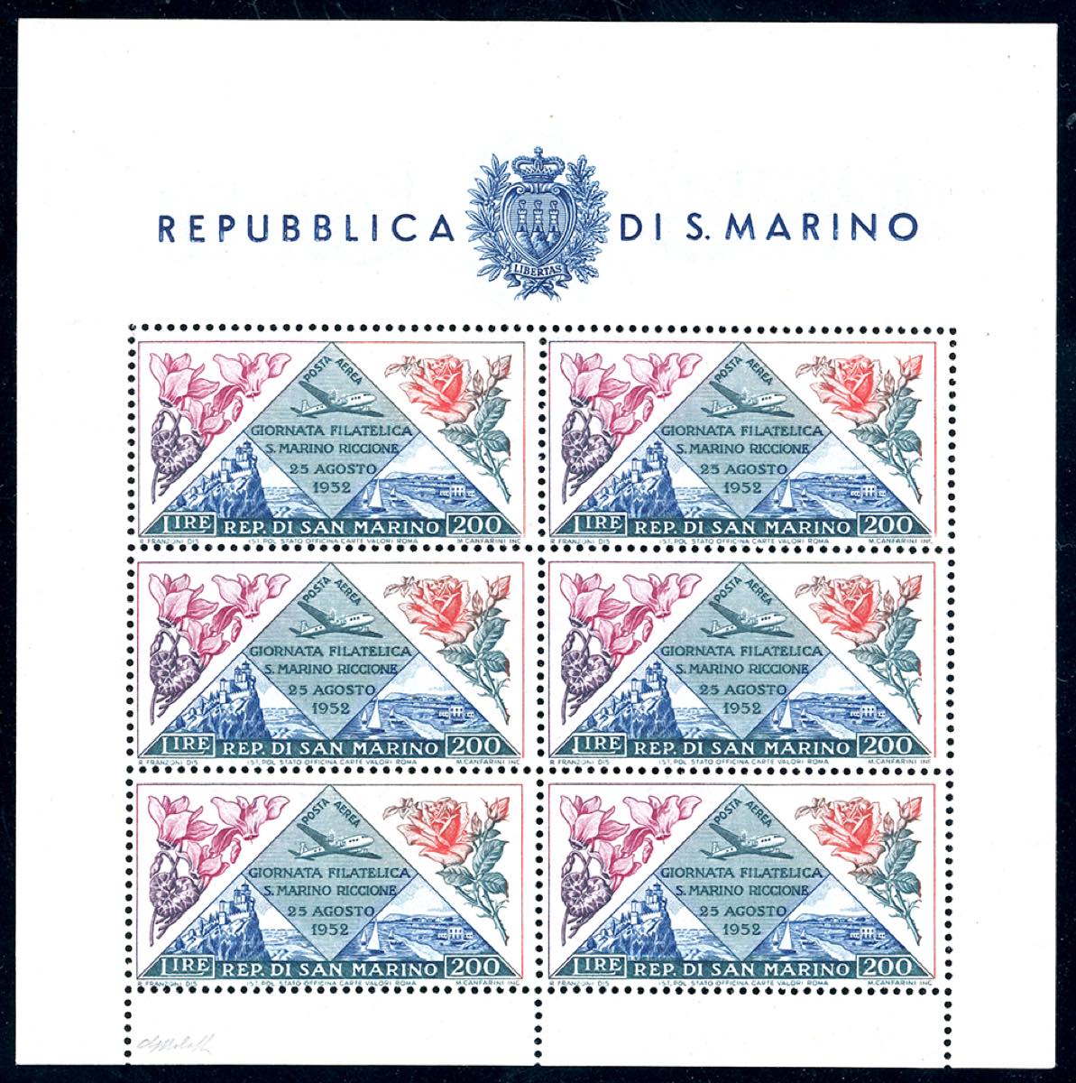 Lotto 2148 - 1952 - 200 lire Fiori, foglietto (14), nuovo, gomma ...