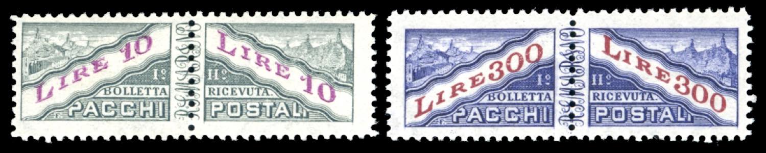 Lotto 2171 - 1953 - 10 e 300 lire, filigrana ruota (35/36), gomma ...