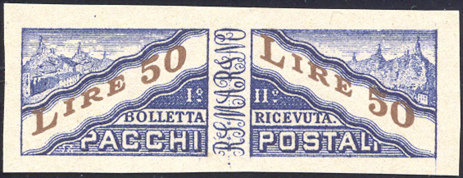 Lotto 2172 - 1956 - 50 lire oltremare cupo e bruno, prova stampata in ...