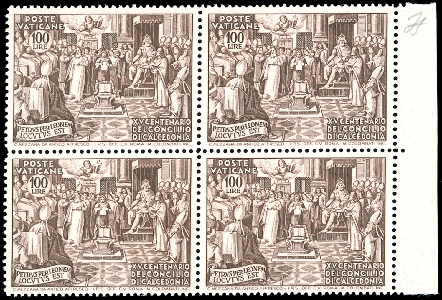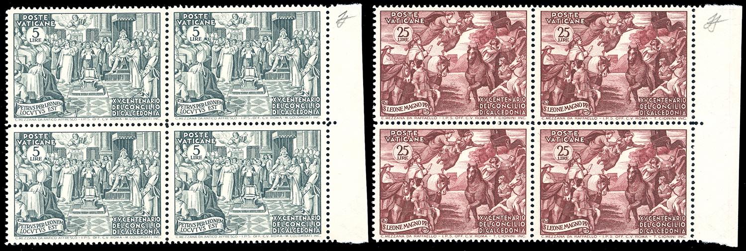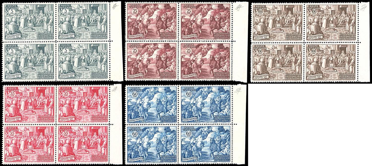 1951 - Calcedonia, serie completa in blocchi di quattro (149/153), nuovi, bordo di foglio, gomma originale integra, perfetti. Freschi e ... Leggi tutto