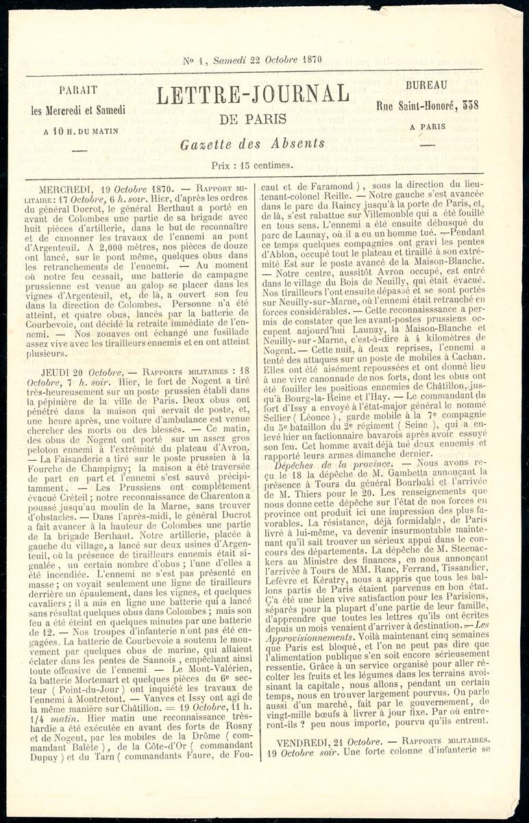 FRANCIA POSTA AEREA BALLON MONTE' 1870/71 - Collezione completa del Lettre - Journal de Paris Gazette Des Absents, dal numero 1 al 35, con ... Leggi tutto