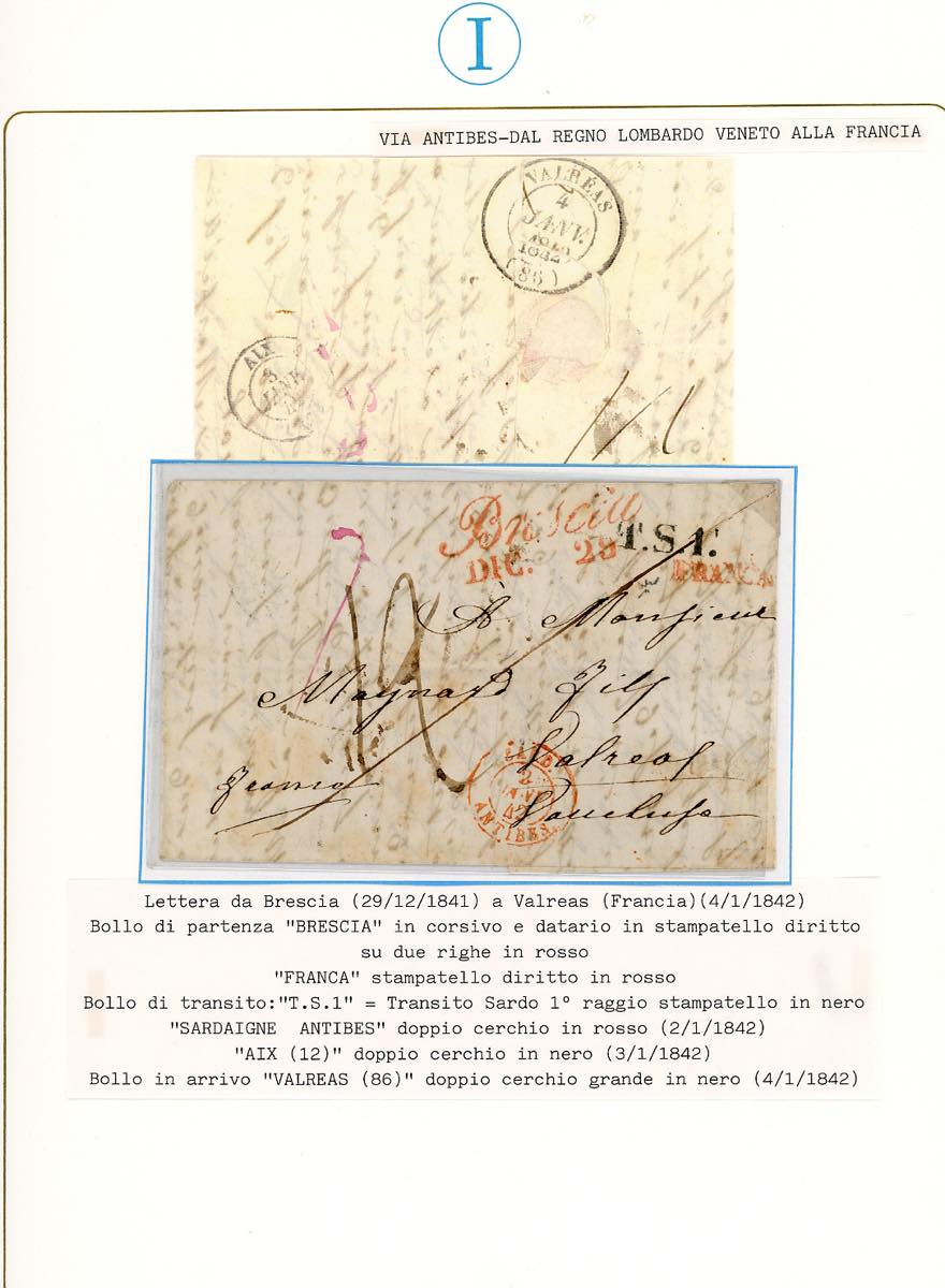 LOMBARDO VENETO PREFILATELICHE 1793/1849 - Bell'insieme di 9 lettere del periodo prefilateliche da Brescia alla Francia, con buona varietà di bolli e tassazioni. Tutte montate in fogli da esposizione con dettagliate descrizioni. Molto interessanti, provenienti dalla collezione Imperato.