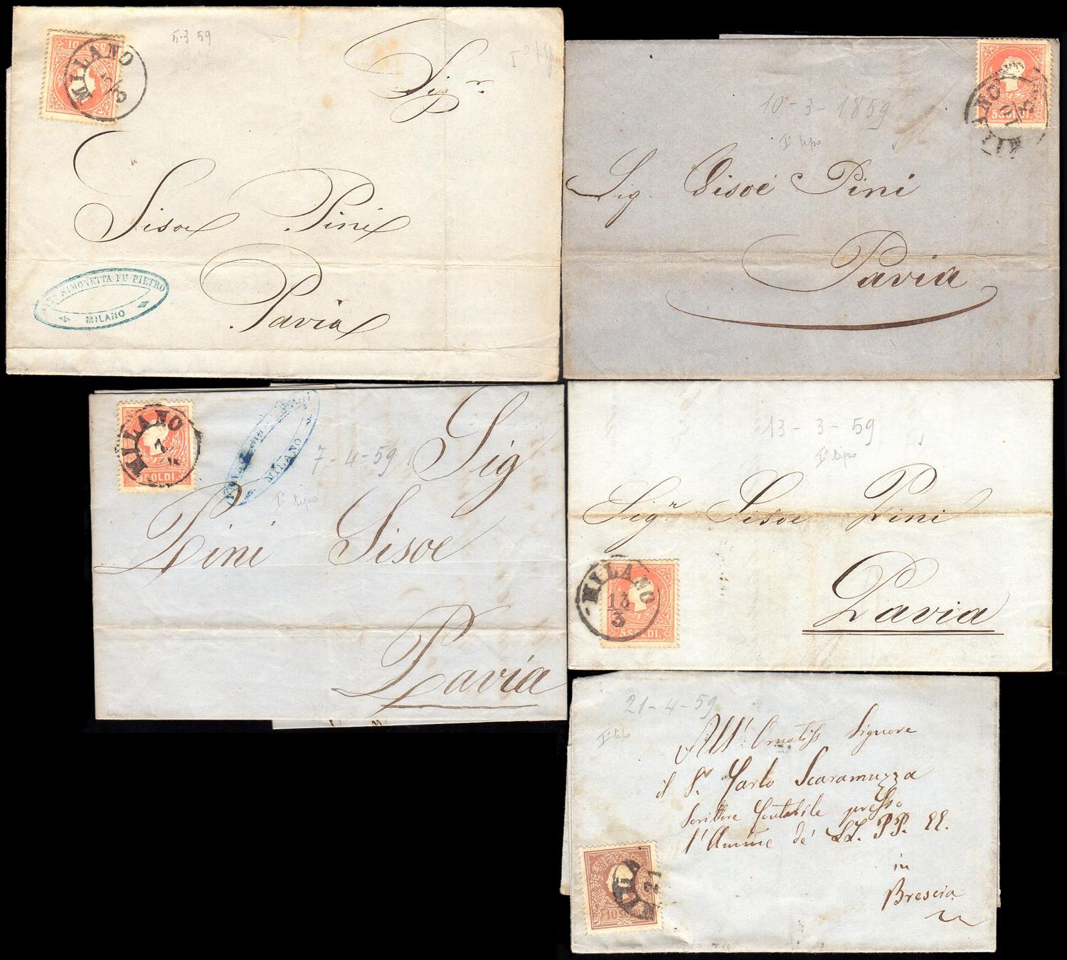 Lotto 2280 - LOMBARDO VENETO 1858/1859 - Sette lettere affrancate con 5 ...