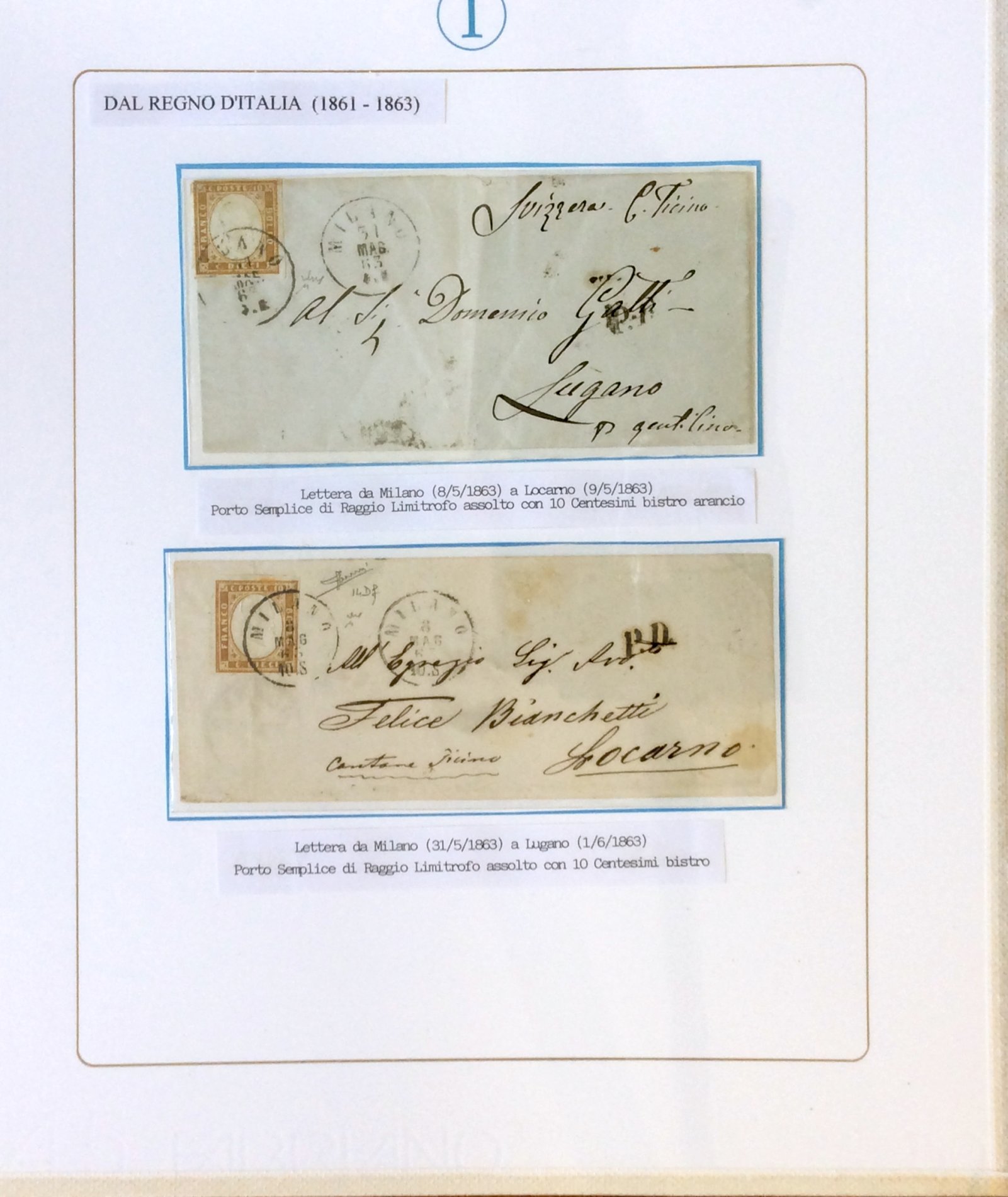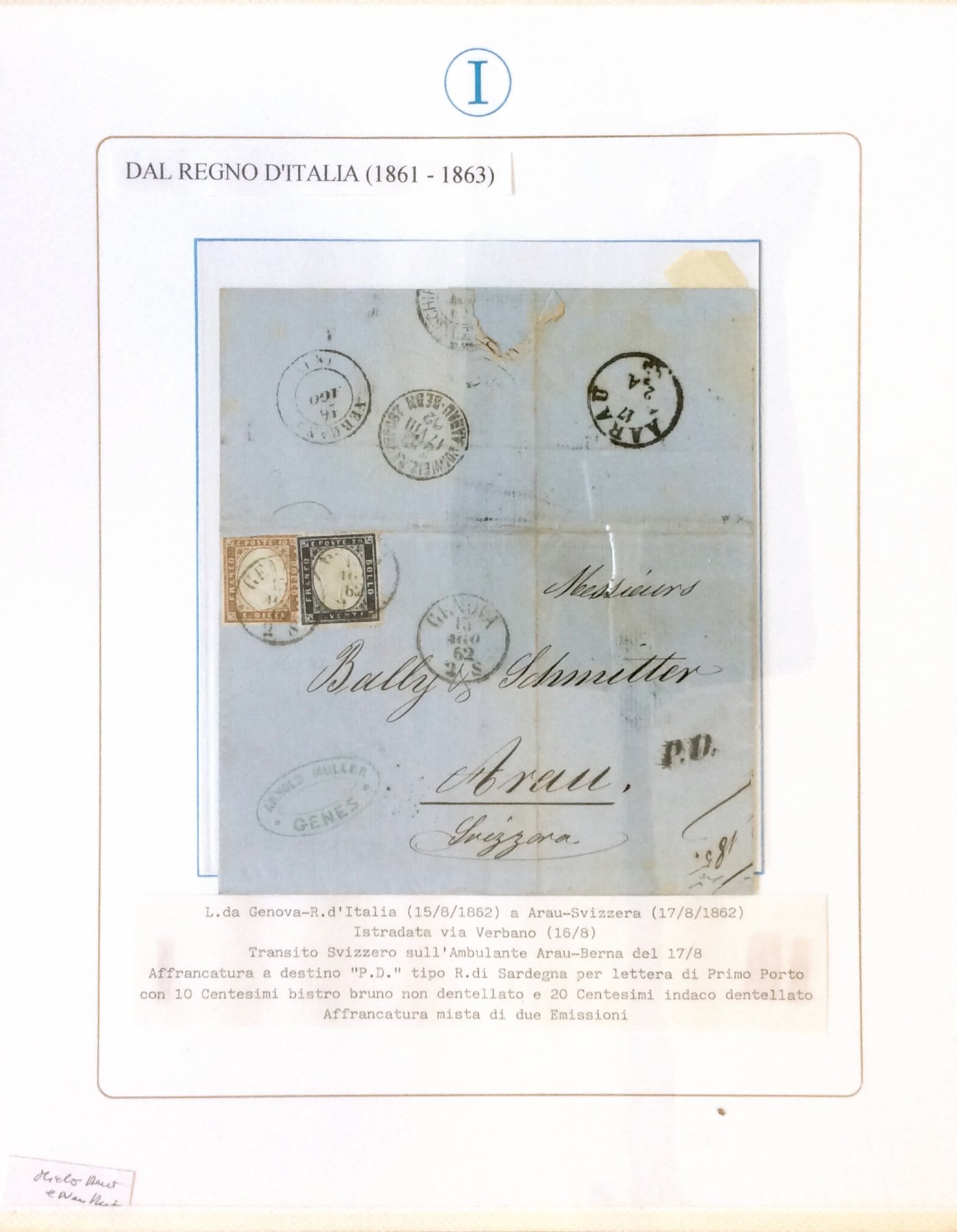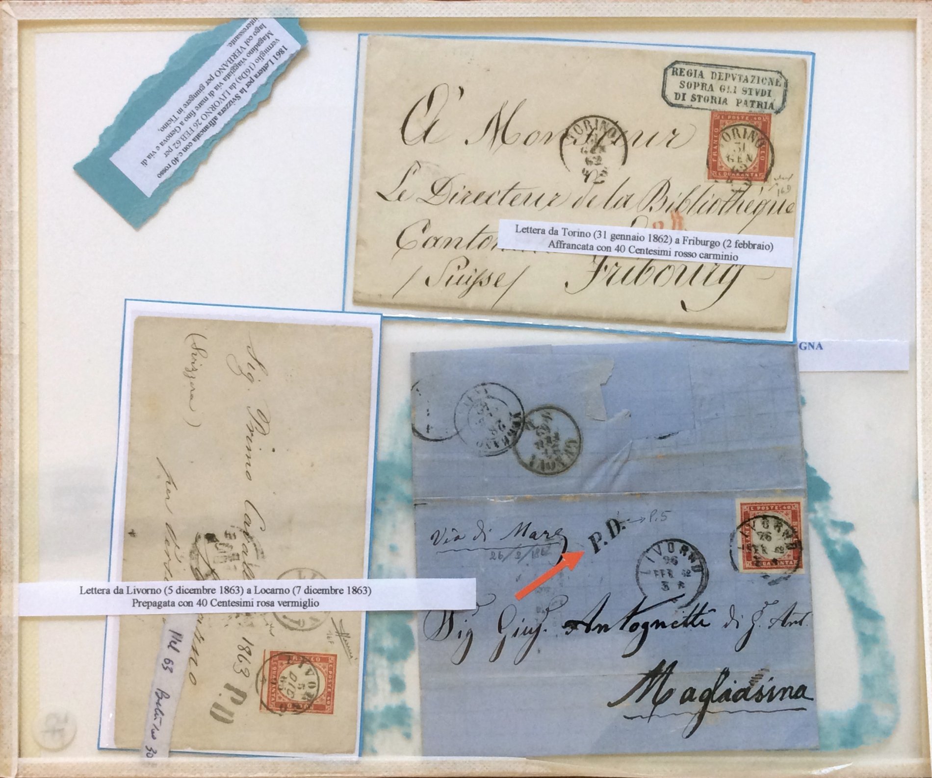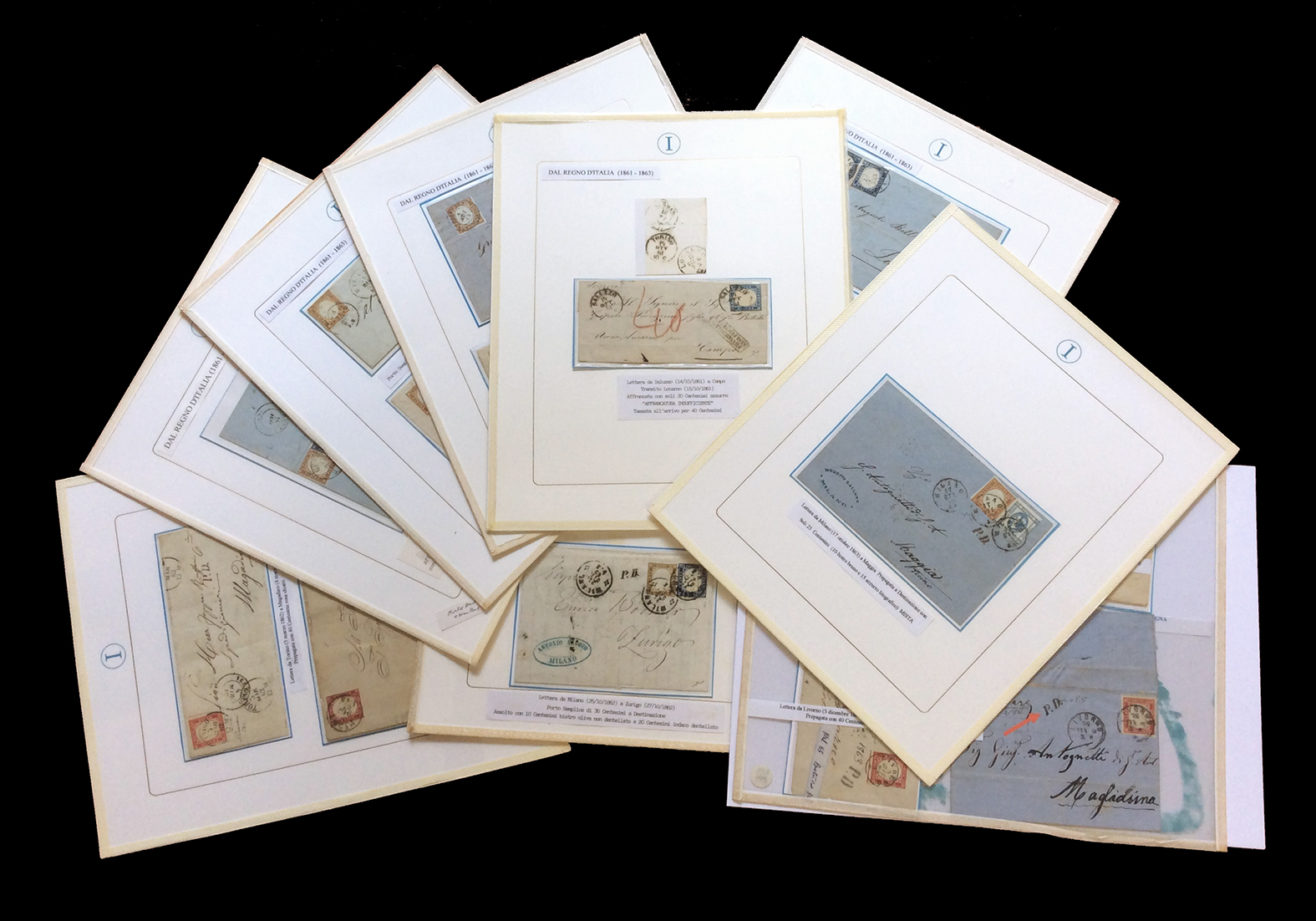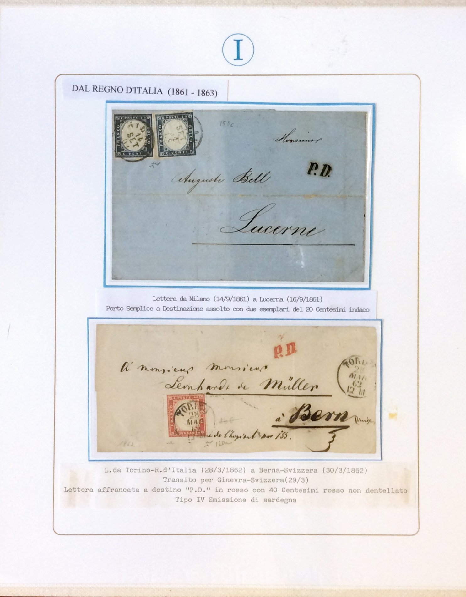 SARDEGNA 1861/1863 - Bellissimo insieme di 15 lettere con affrancature del periodo, tutte indirizzate in Svizzera. Notate non comuni ed interessanti presenze. Ex collezione Imperato.