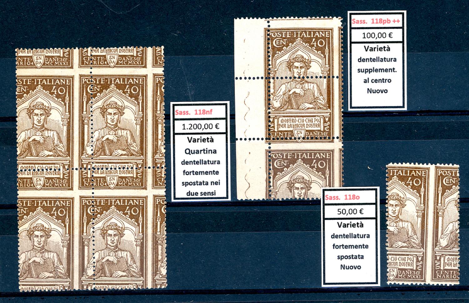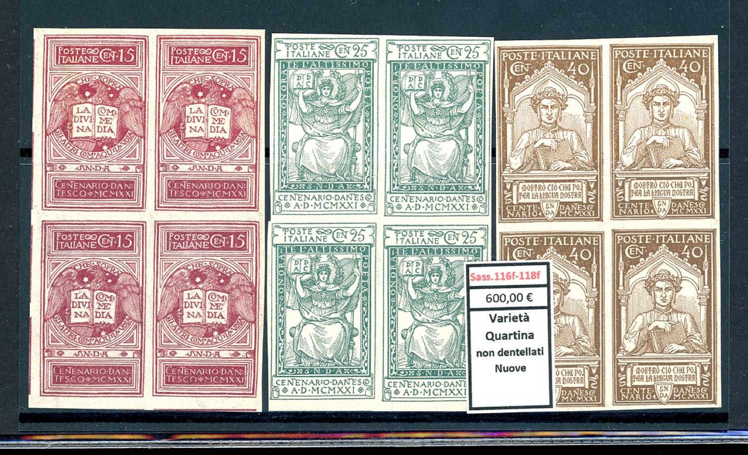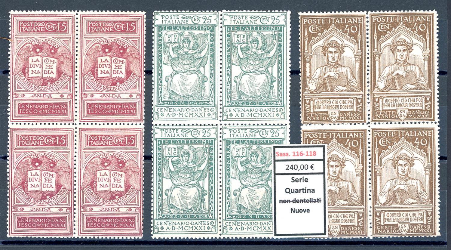 Lotto 2315 - REGNO D'ITALIA 1921 - Dante (116/118), bell'insieme di ...