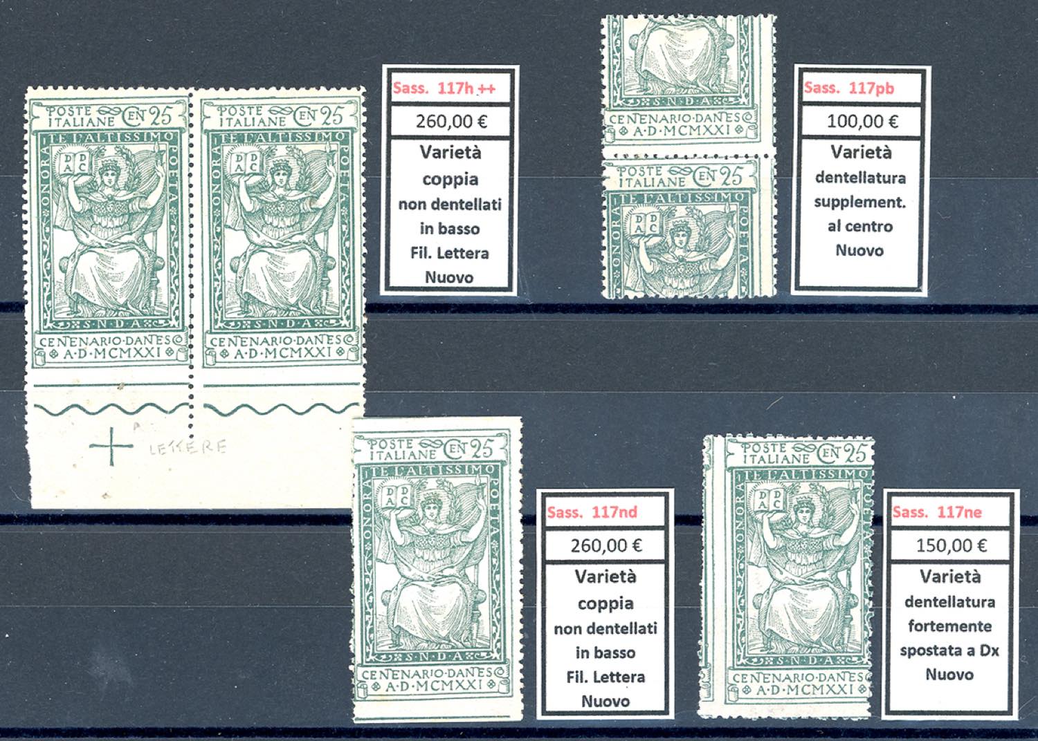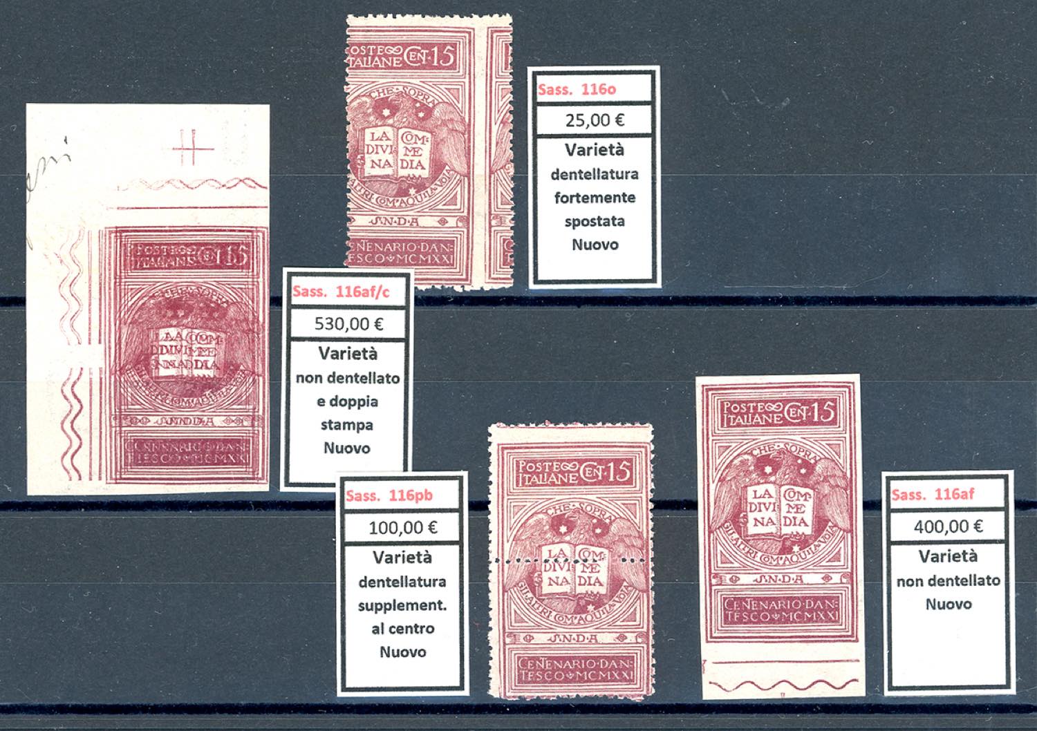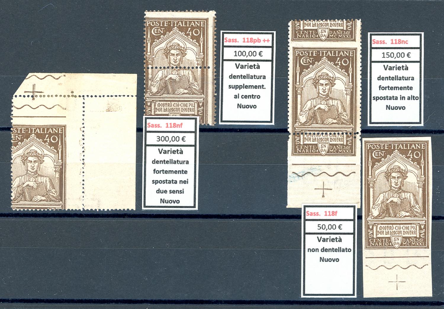 Lotto 2315 - REGNO D'ITALIA 1921 - Dante (116/118), bell'insieme di ...