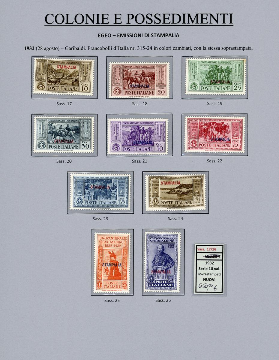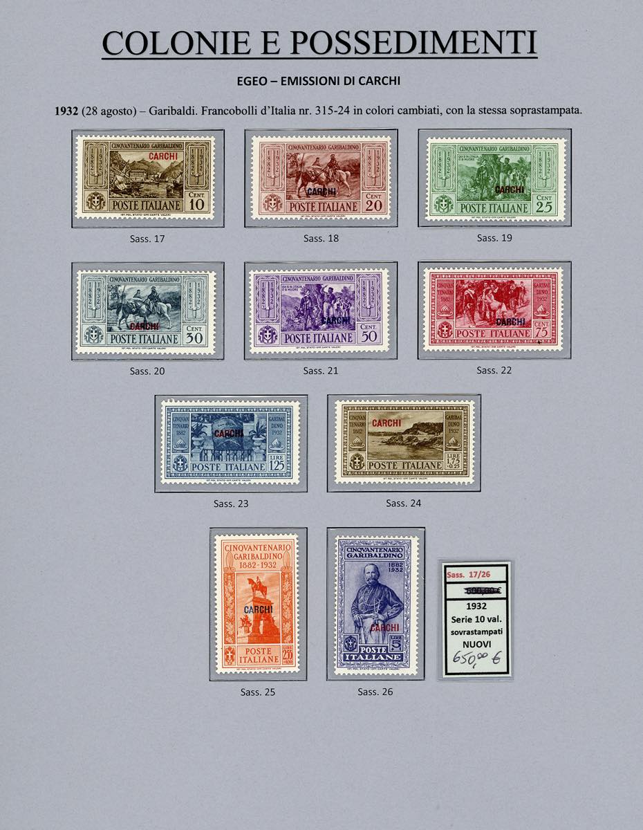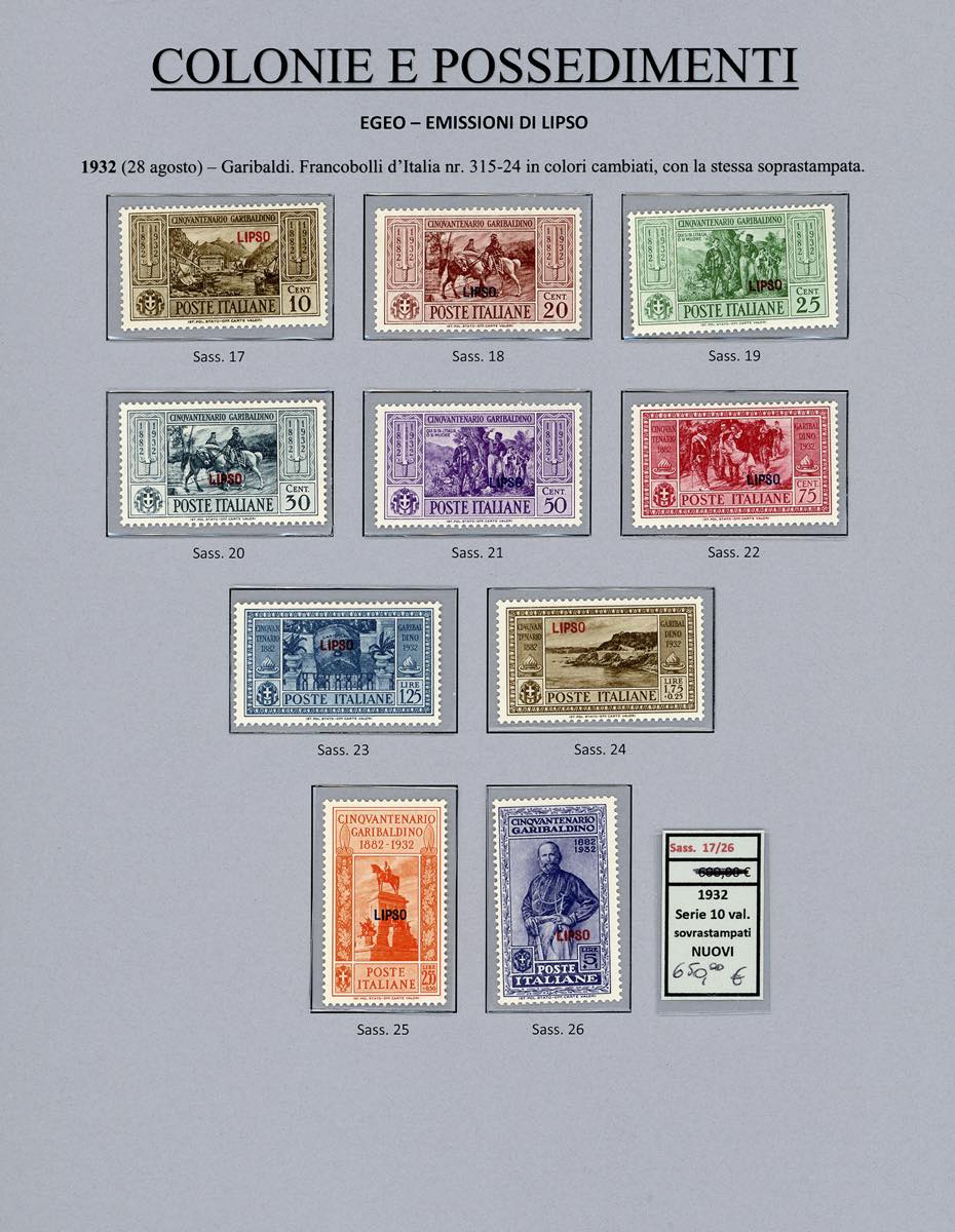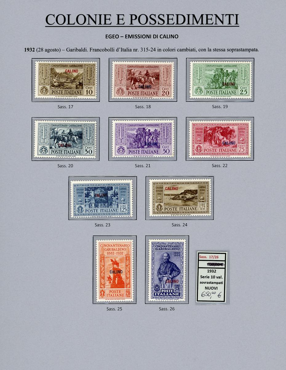 Lotto 2394 - ISOLE DELL'EGEO 1932 - Garibaldi, giro completo di 14 ...