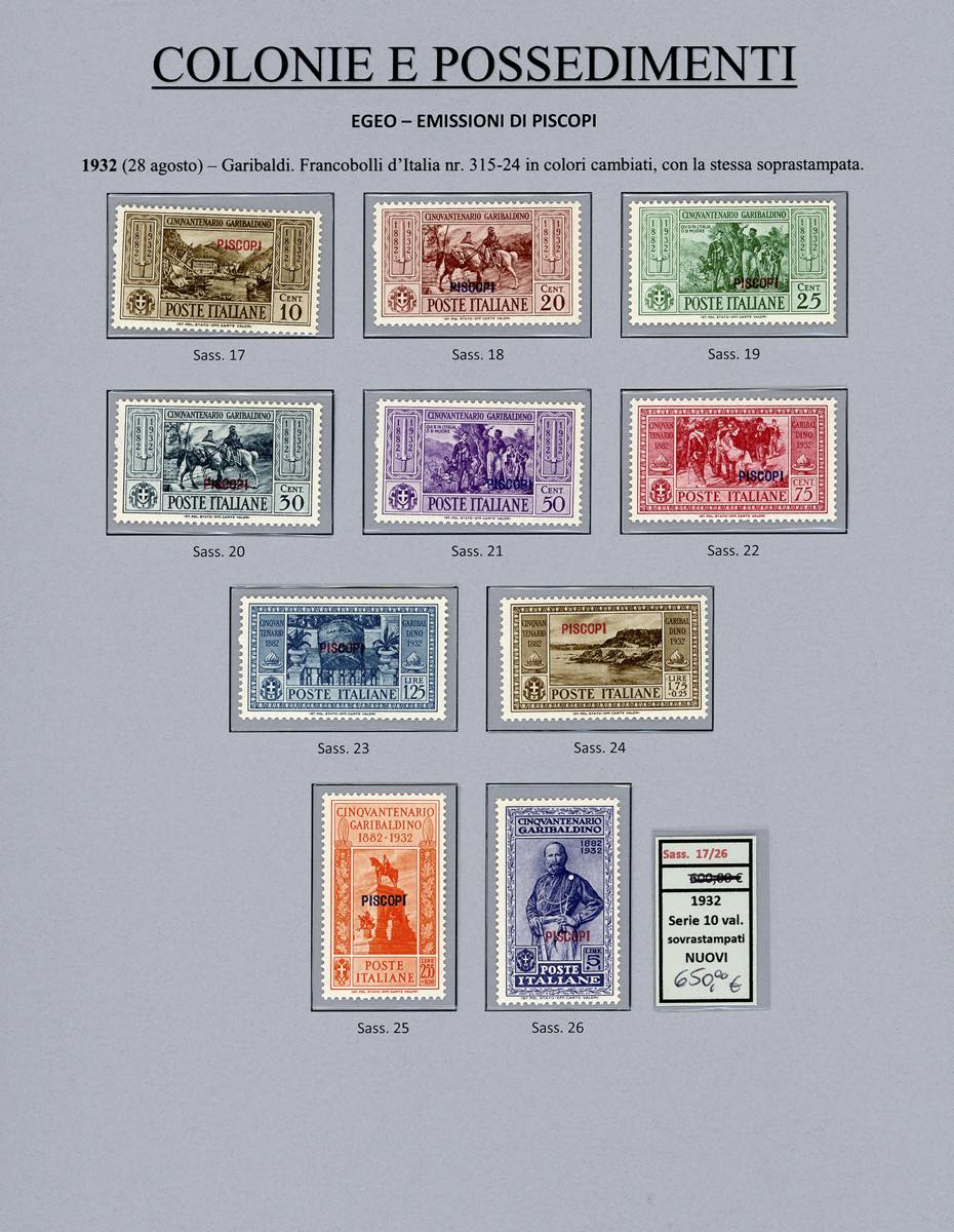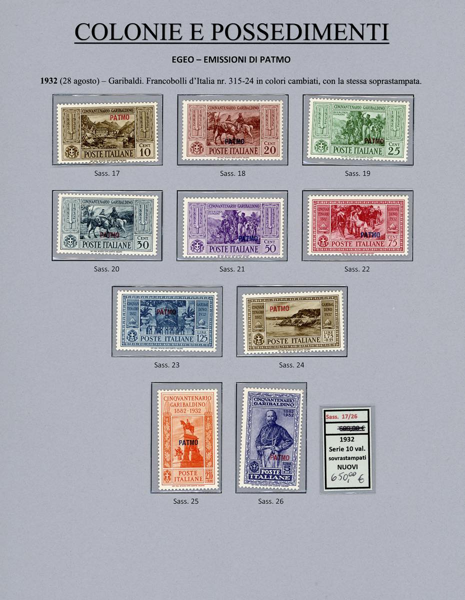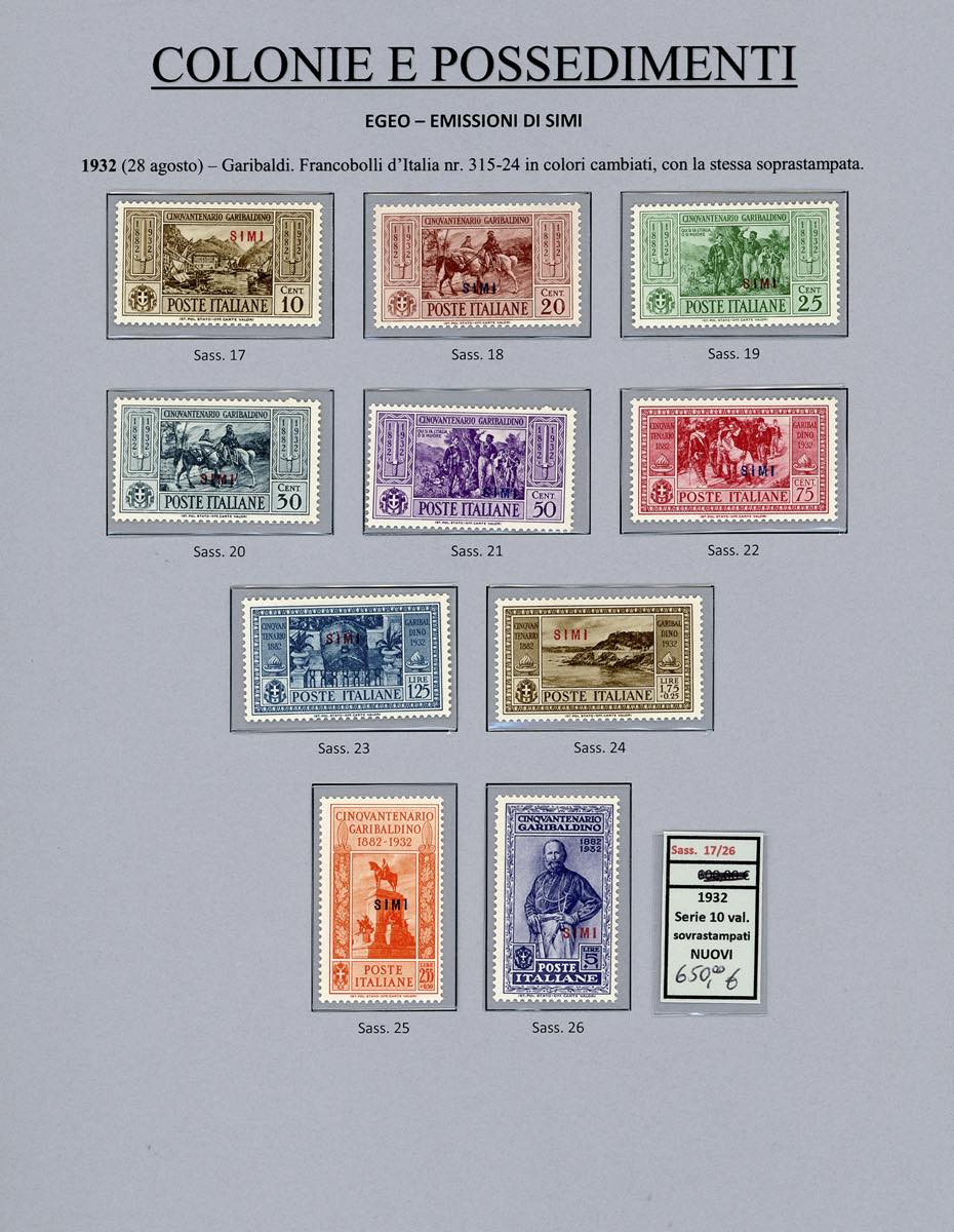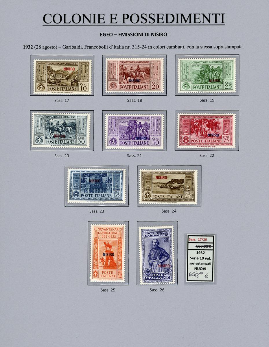 Lotto 2394 - ISOLE DELL'EGEO 1932 - Garibaldi, giro completo di 14 ...